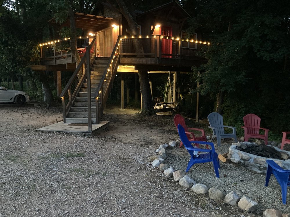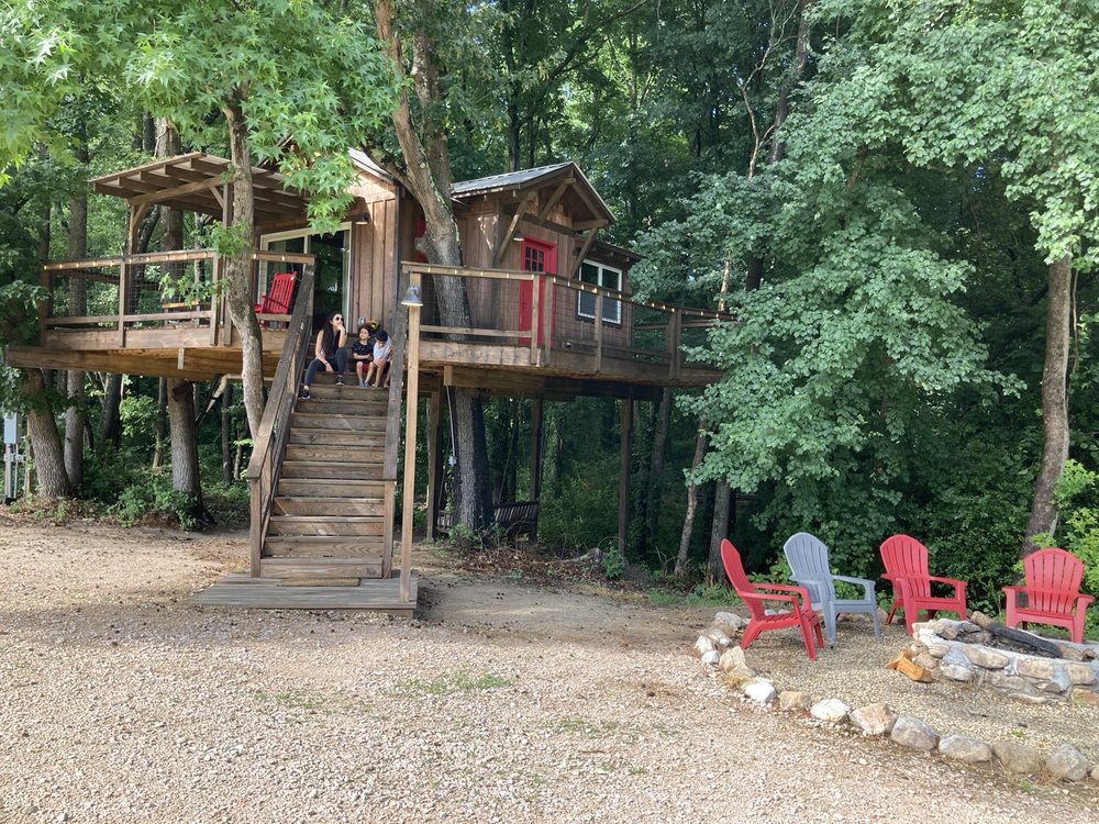 Cherry Treesort offers a great and peaceful getaway experience, with many guests stating they will definitely return. The treehouses, which have names like Nona's Nest, The Big Nick, Sweet Ashley, and Trevor Treehouse, are generally described as very clean, comfortable, and spacious with a fantastic design and perfect decor. They provide all basic amenities, with features such as a fire pit, grill, hammock, swing, chairs, and sometimes a jumping pad or balcony. The resort is not deep in the woods, with a road visible from some units, but it remains a super nice and peaceful place that is super close to town. Guests highlight it as a great couple's getaway or a perfect family outing, suitable for both a quick trip or a longer vacation. The host is noted as nice, helpful, and knowledgeable, providing great instruction before check-in. While some note the experience can feel pricey and point to occasional outdated elements like a rusty toilet seat or a tiny TV monitor with DVD, most agree you pay for the unique experience, not for luxury. There is no Wi-Fi but excellent cell service, along with antenna TV. Common activities include gathering around the fire pit for s'mores, grilling, and simply enjoying time together in a home-away-from-home atmosphere.