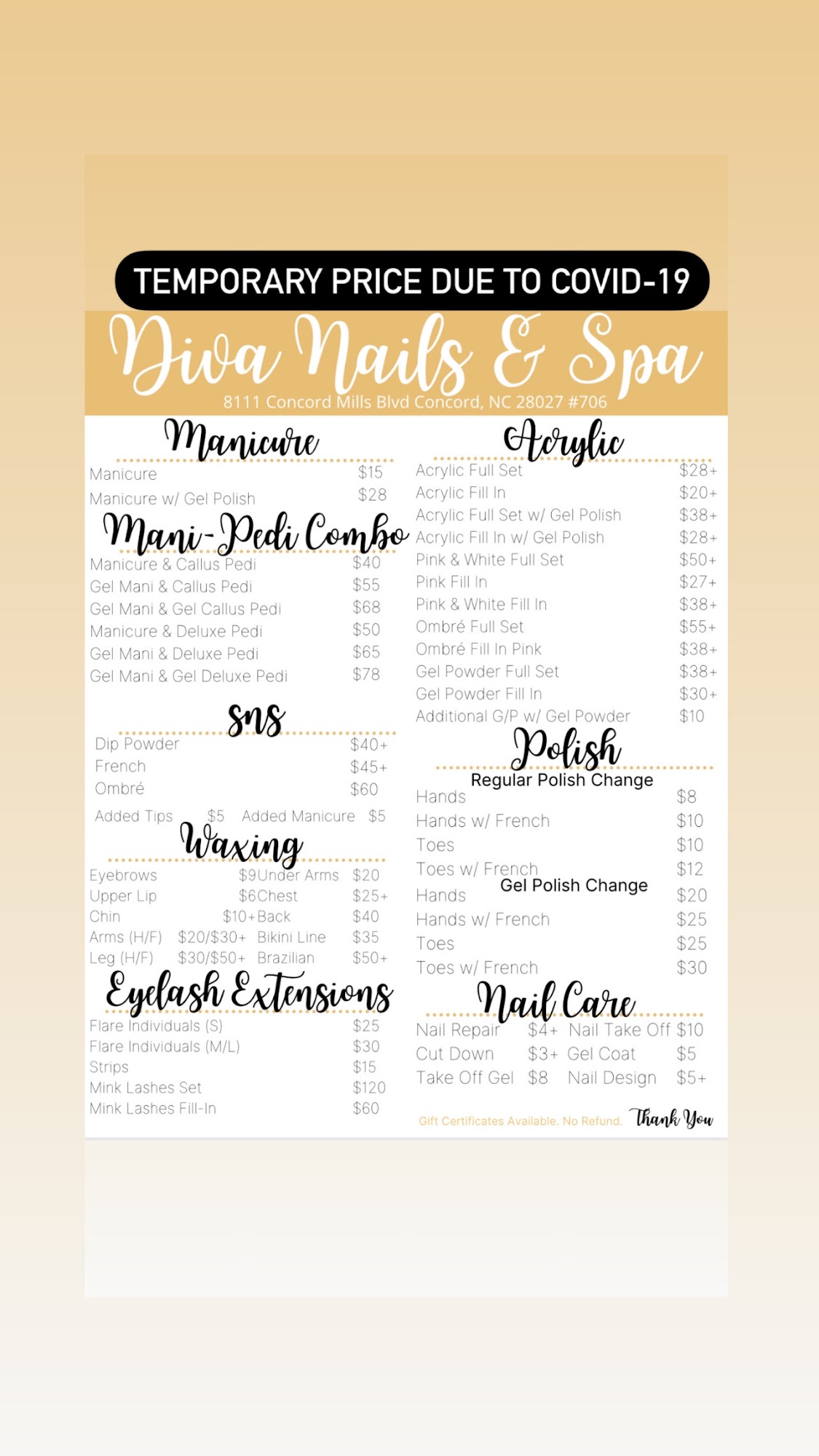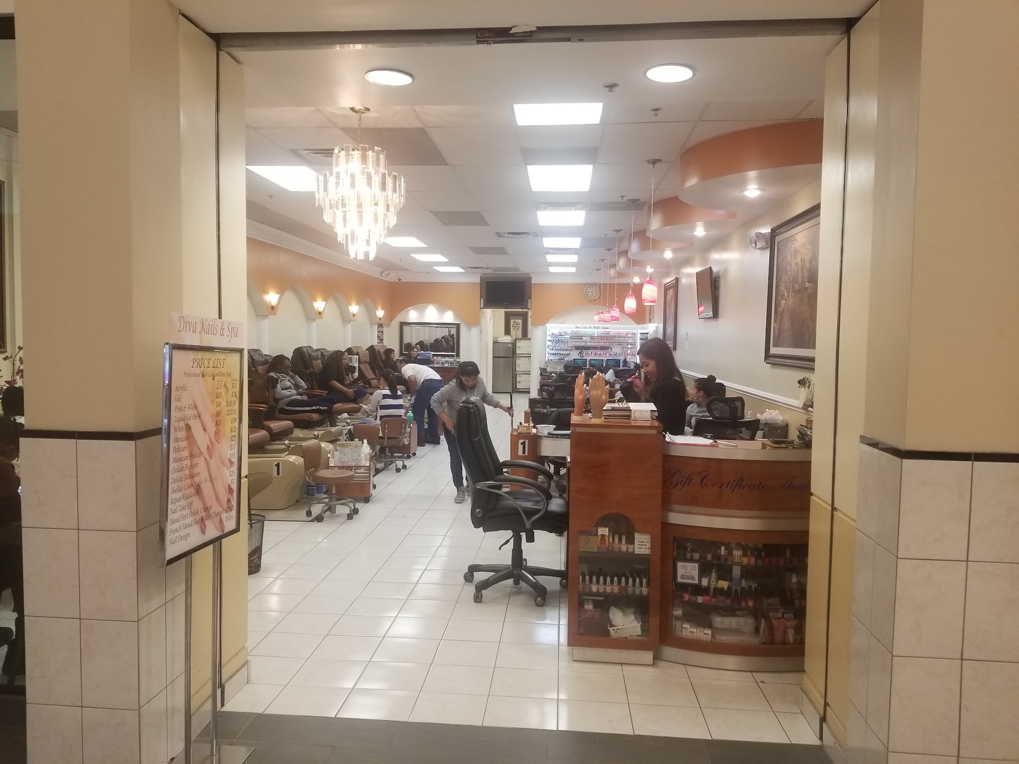 Well, I was aimlessly driving around to get a mani pedi. Everyone I tried was closed except diva nails. The service was excellent, and I will definitely be returning