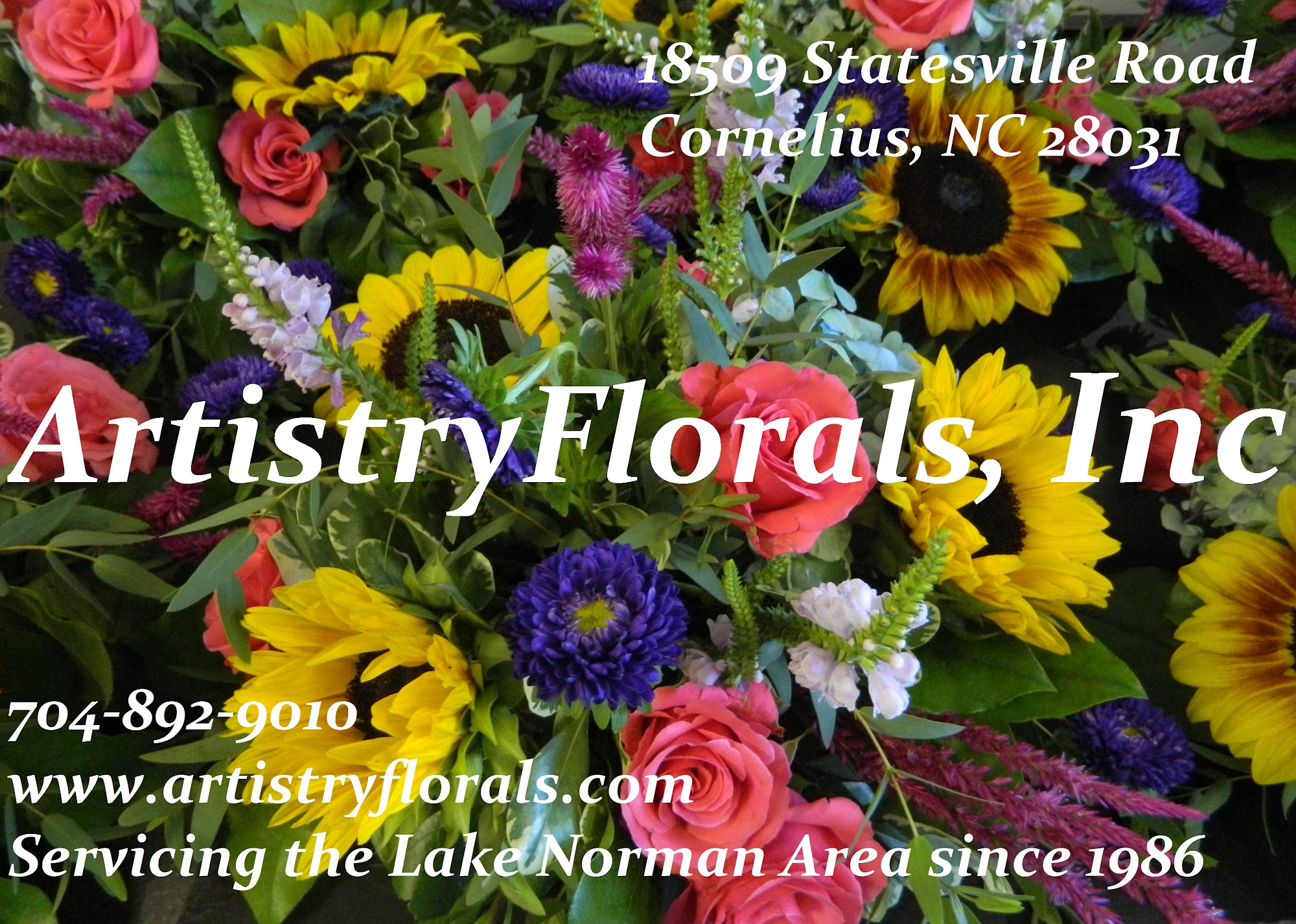 Artistry Florals is a local florist known for creating beautiful and thoughtful flower arrangements. Customers frequently praise the staff for their helpful and friendly service, with one reviewer describing their experience as wonderful and mentioning that they spoke with a "wonderful man" who assisted in choosing the perfect flowers. The florist is appreciated for their ability to add special touches, such as winter pine, which bring extra joy and meaning to the arrangements. Many customers express their satisfaction with the quality of the bouquets and baskets, noting that they are consistently beautiful and expertly made. Artistry Florals offers convenient delivery, even for out-of-state orders, making it easy for customers to send flowers to loved ones in the Cornelius area or elsewhere. Their designs range from simple bouquets to elaborate event centerpieces, including wedding arrangements with creative themes like casino elements. Customers also highlight the company's attention to detail and willingness to customize, which helps create memorable moments for recipients. Overall, Artistry Florals is highly recommended for quality, service, and the ability to make each floral gift special. Call them at 704-892-9010 for all floral needs.