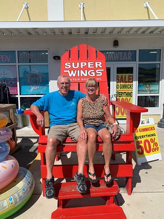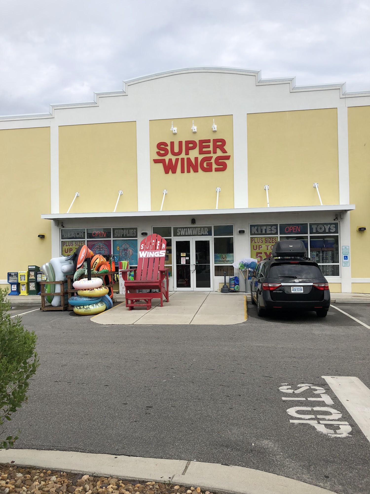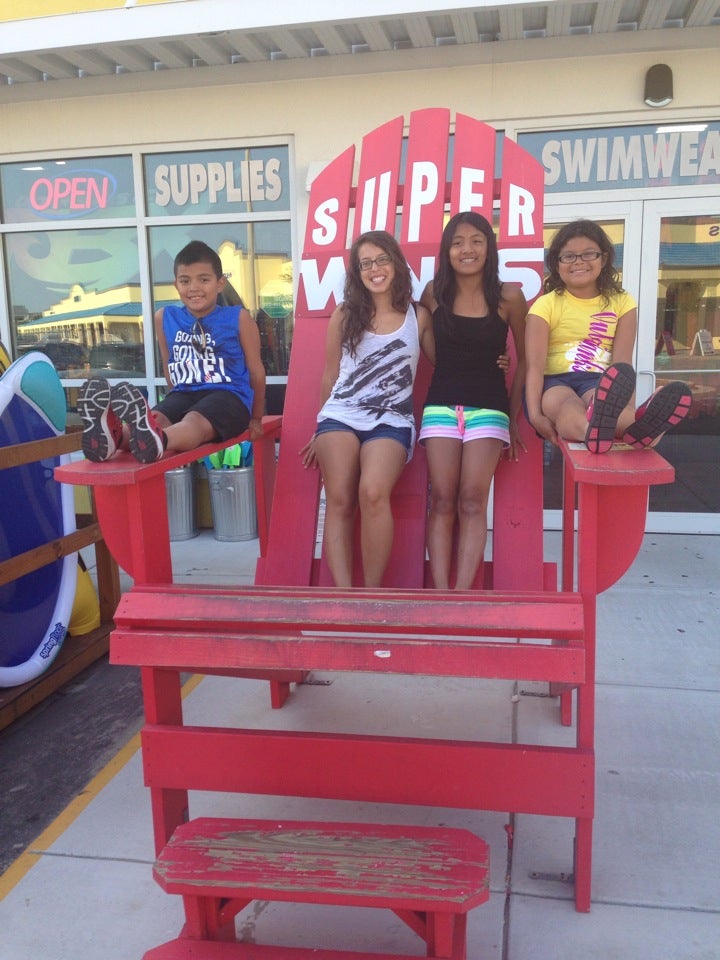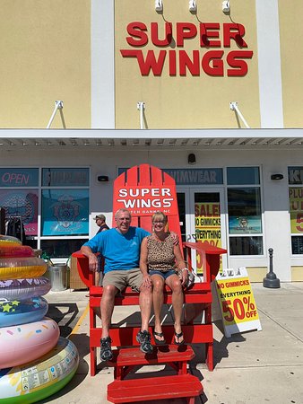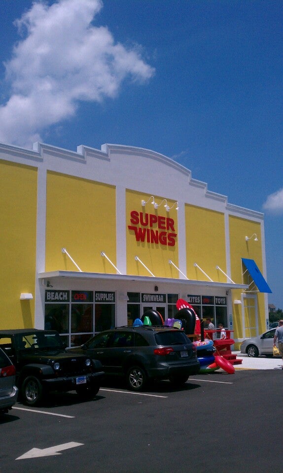Super Wings is a souvenir and beach supply shop. It is described as a great place to get all beach needs, with a ton of selection for tourist needs, including beach chairs, towels, shirts, swimwear, and goofy and trendy souvenirs. Many find the prices reasonable and fair, with reasonable deals. The staff is noted as very polite, helpful, and friendly. However, some items are seen as way overpriced, and the store carries about the same things as other shops. There was also an instance where advertised sale prices for towels did not match the tags. The store can be bright, colorful, and well-stocked, though it may become disheveled when busy.