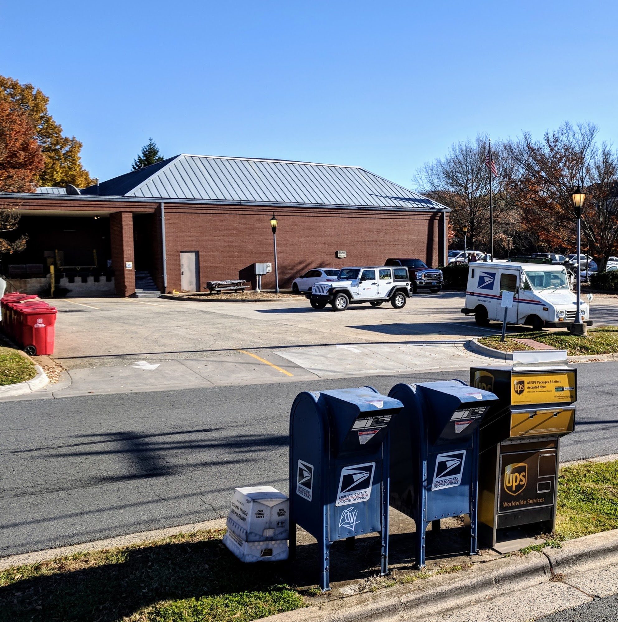 The post office workers are wonderful.The parking sucks. No enforcement for posted post office customer parking. 30 or so spots taken, Post Office is empty of Customers. Had to park elsewhere in town.