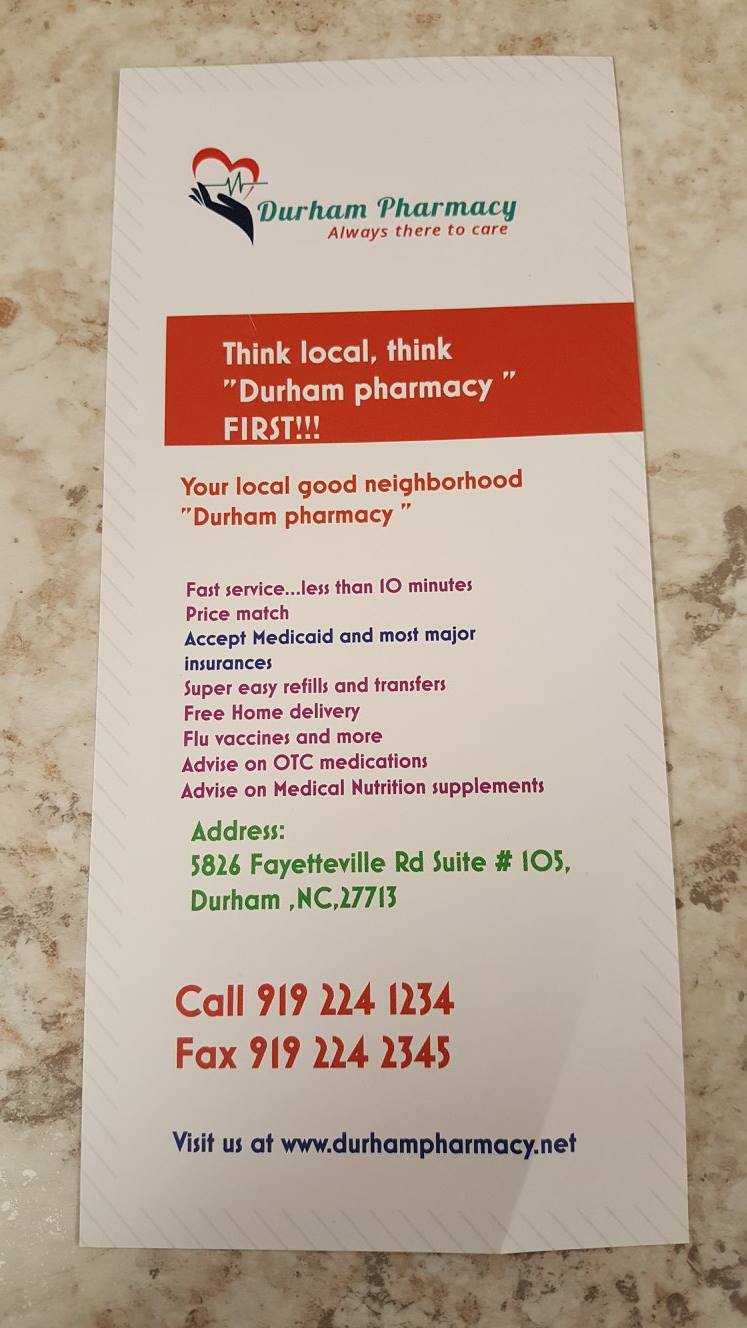 Durham Pharmacy is a small, family-owned business that offers excellent service and care for its customers. The pharmacy is known for its punctual filling of prescriptions and proactive communication regarding any issues with insurance or supply delays. Customers appreciate the knowledgeable and friendly staff, who provide quick service in a less crowded environment compared to larger chains. Many reviews highlight the efficiency of the team, especially in managing recurring prescriptions, and the ease of getting medications delivered. The pharmacy also advocates for patients with doctors and insurance companies, ensuring a smooth process. Additionally, customers recommend Durham Pharmacy for vaccinations, noting the painless experience. Overall, it is a highly recommended local option for pharmacy needs.
