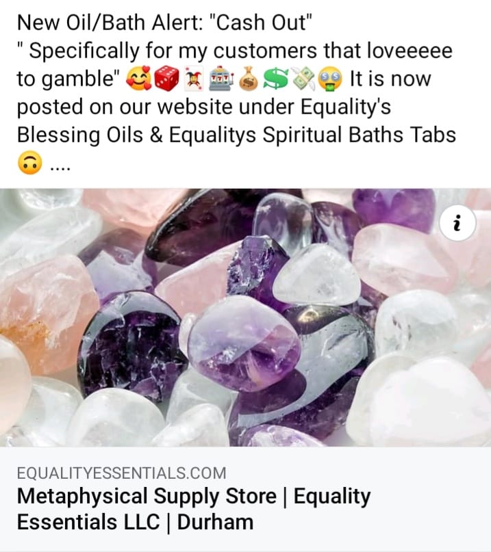 Equality Essentials LLC is a welcoming metaphysical supply store dedicated to providing high-quality spiritual tools and supplies to support customers on their spiritual journeys. Customers appreciate the friendly and knowledgeable staff, especially the owner, who is described as kind, responsive, and willing to answer questions. The store offers a variety of items such as sage, candles, oils, and herbs that are used for cleansing, protection, and bringing positive energy into homes. Many customers highlight the helpful guidance received, particularly in areas like contacting ancestors, burning herbs, and performing spiritual baths. The store also partners with other Black Owned Businesses in the community to fulfill spiritual needs. Overall, customers feel valued and satisfied with the affordable merchandise, great advice, and attentive service, making Equality Essentials LLC a trusted place for spiritual supplies and guidance.