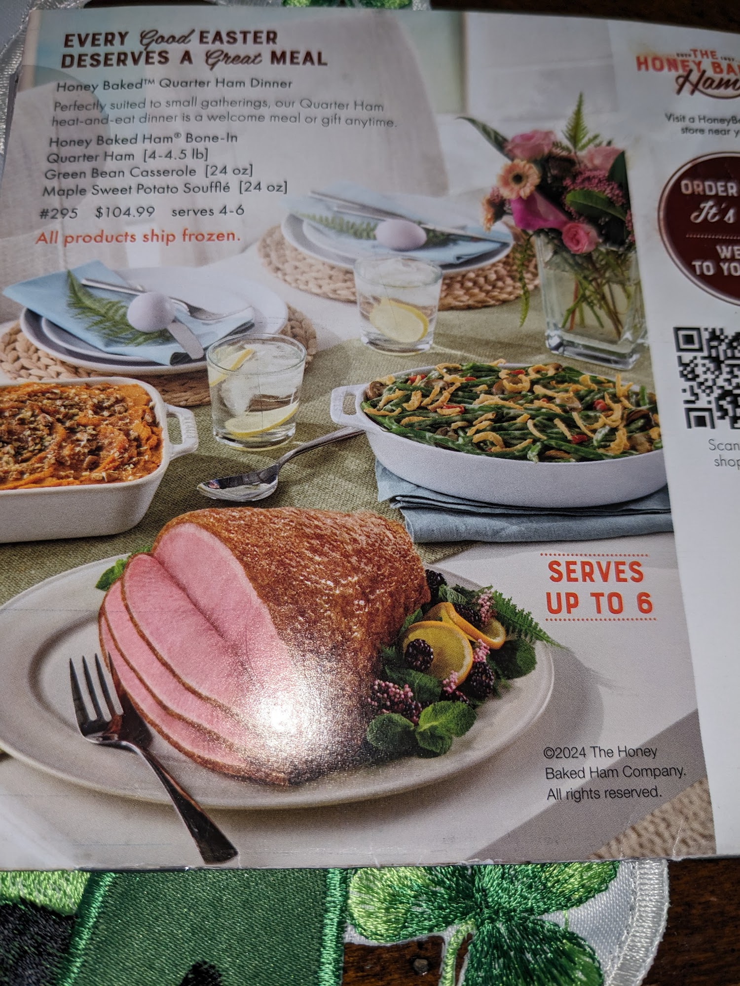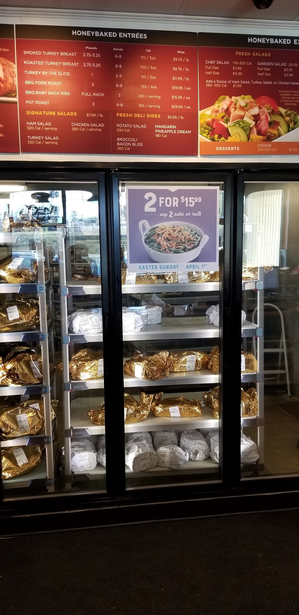 Everything’s frozen and you have to cook it yourself at home. I like the old honey baked ham Company. Where you can walk in and get a hot ham and hot sides.