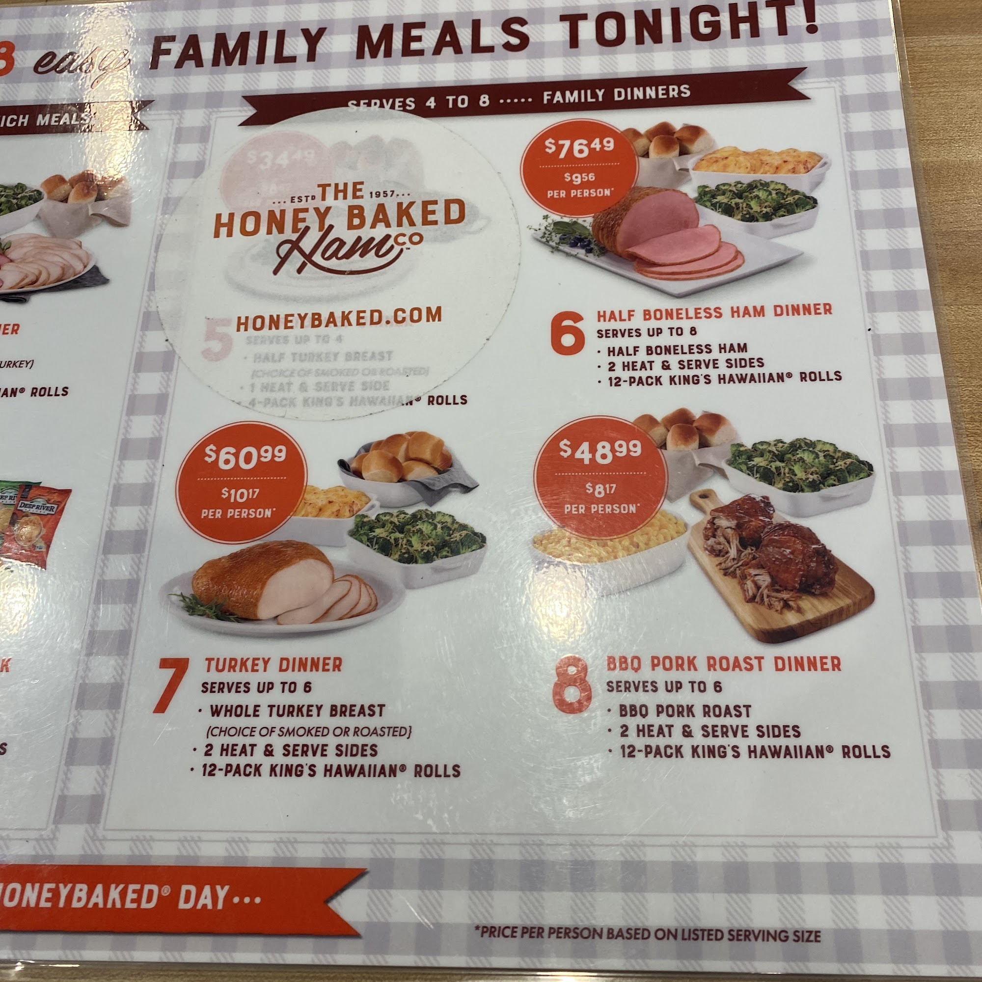 A favorite for holiday meals. Ham, turkey, sides, desserts: all are tasty! We've tried the bone-in hams, the boneless hams, and the ham slices; are all great. Be sure to sign up for their loyalty savings.
