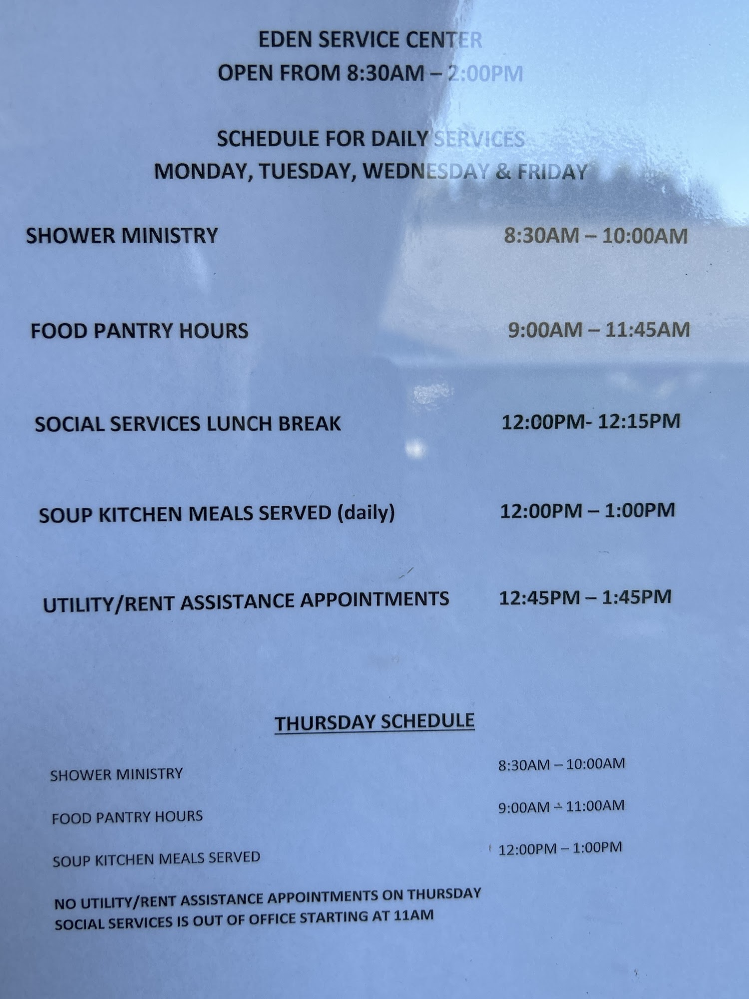 Very good food I'm in need of a coat I'm a XXL. We need a ride to come shower. Please put more cakes out I never get any. We need help with clothes and boots and shoes. I am a 8.5 9 my husband is a 8.5 9. We are in eden NC west Ave 1015.