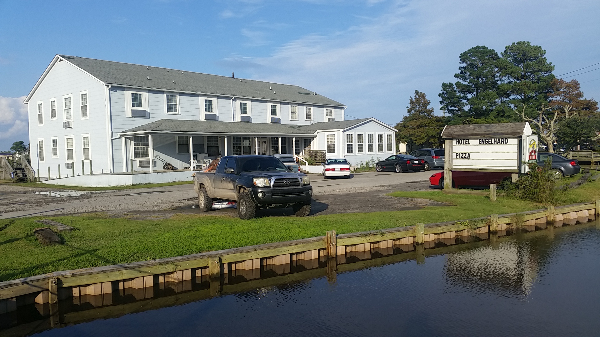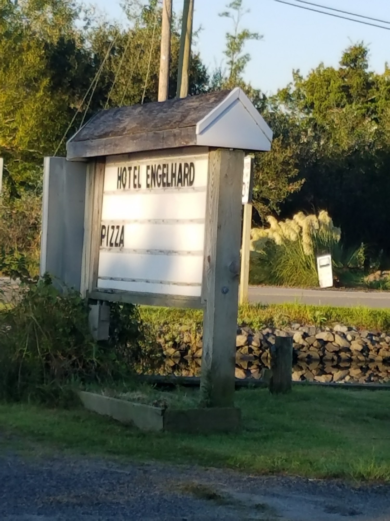 Hotel Engelhard is an old and dated, old school hotel with a wonderful porch and a country trust vibe, similar to a hunting or fishing lodge. The rooms are clean and comfortable, though nothing fancy. The staff is nice and responsive. The hotel has reliable wifi, though cell reception can be poor. The on-site pizza is good and affordable. A gas station across the street, owned by the same person, offers free coffee to guests. The owner is working to improve the place, and many guests would definitely stay there again.