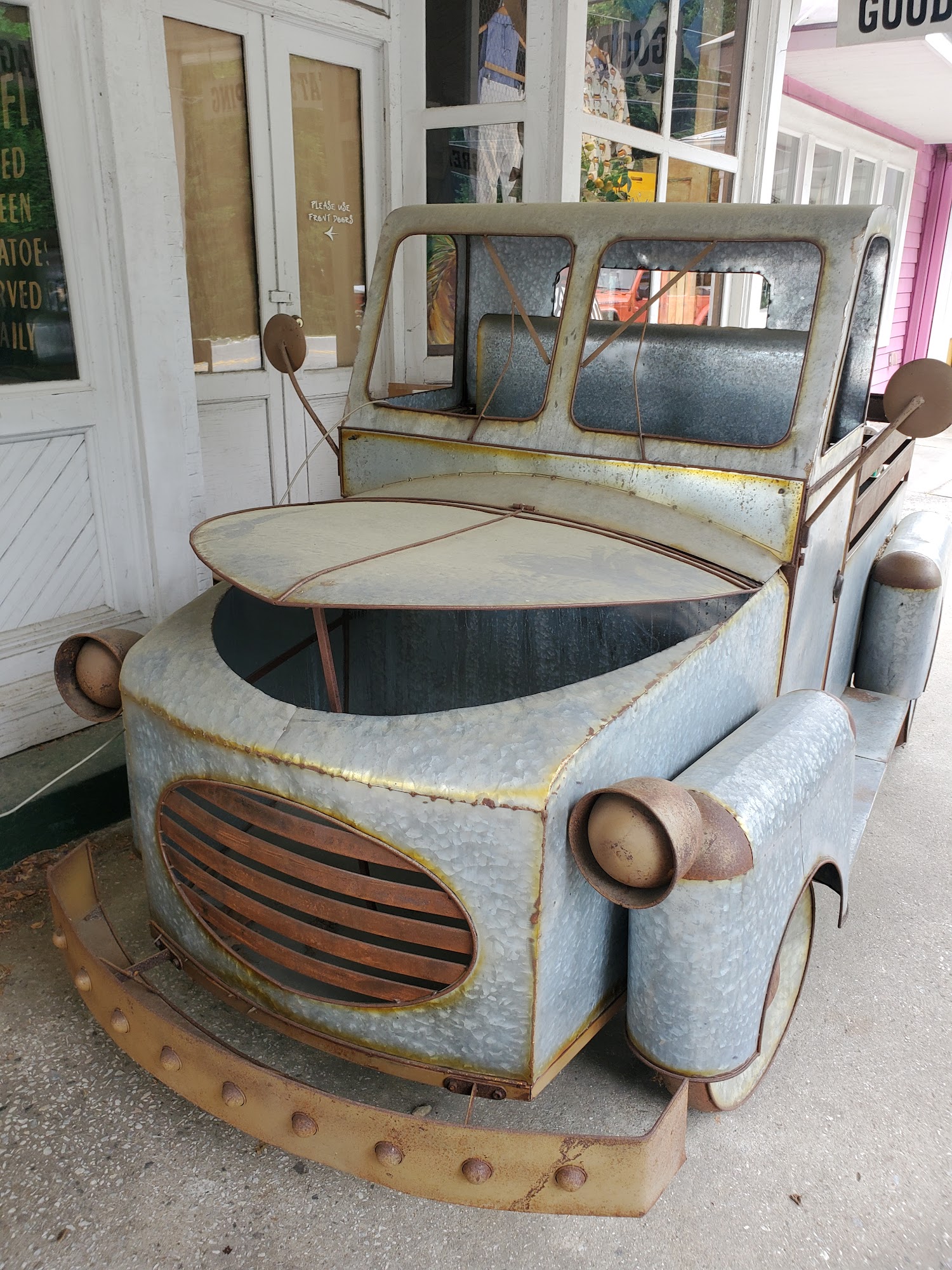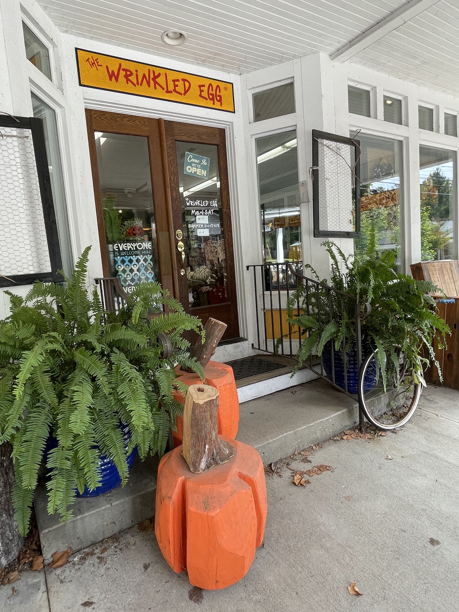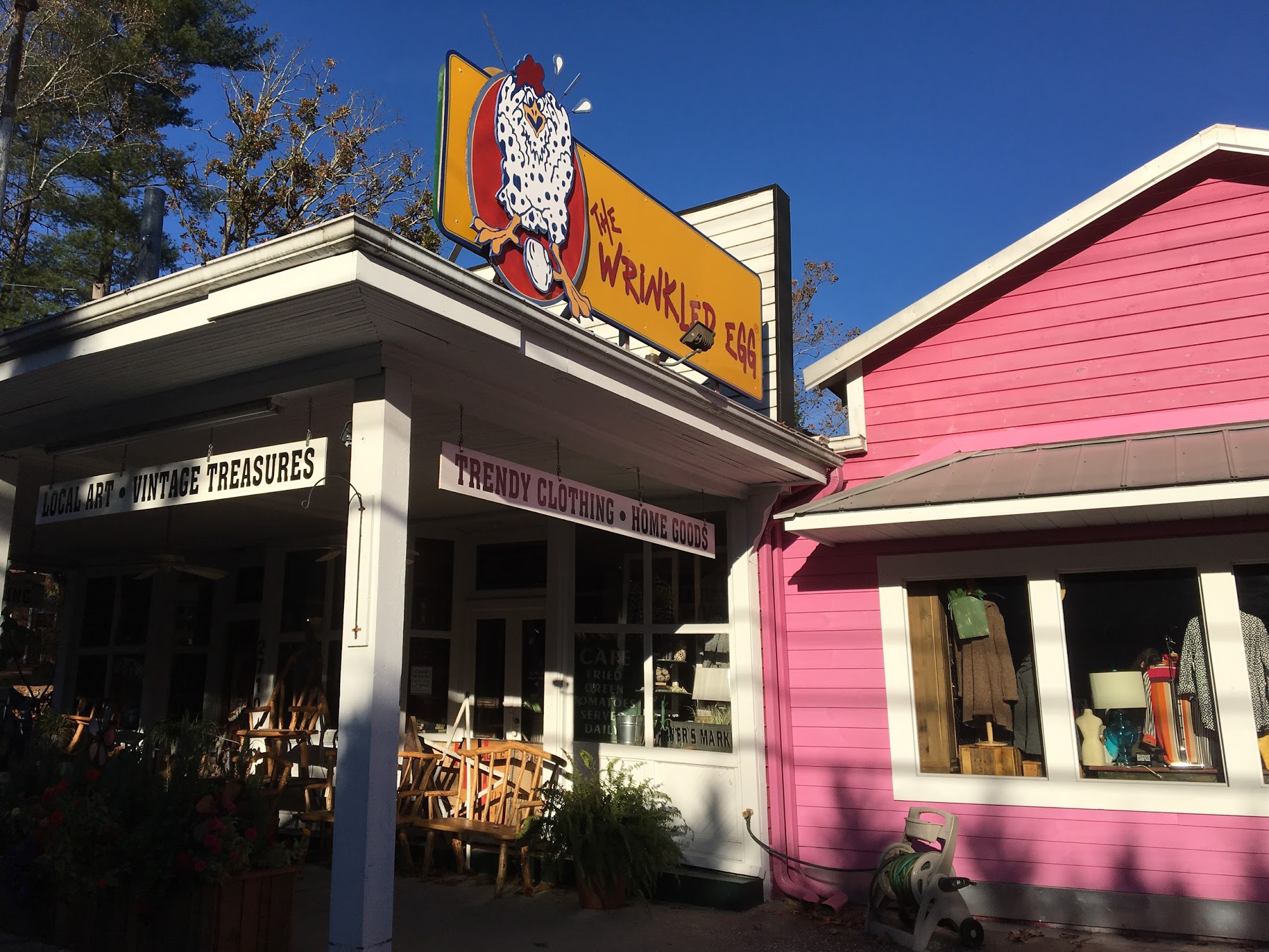 The Wrinkled Egg is a well-stocked gift shop full of fun surprises, not a restaurant. It offers a phenomenal selection of gifts and personal items, from clothing and jewelry to crafts, children's toys, and learning tools. There is a fabulous selection of home wares plus very stylish women's dresses and other apparel. The shop is connected to a cafe and bakery, where the food is really good, including awesome pizza, desserts, and lattes. It can be very busy, with a crowded diner portion and long waits. Parking is very hard to find. The shop is geared towards tourism but also has unique items for locals. It is a fun shop to visit, especially with kids, as there is a great selection of toys and games and even some live animals. It can be a bit pricey.