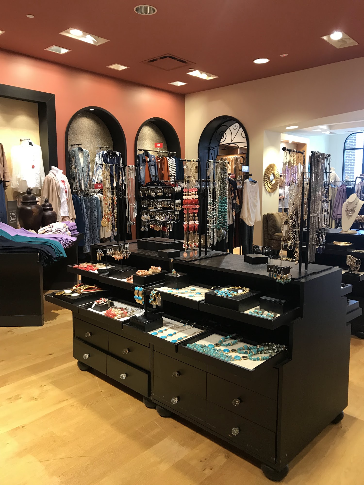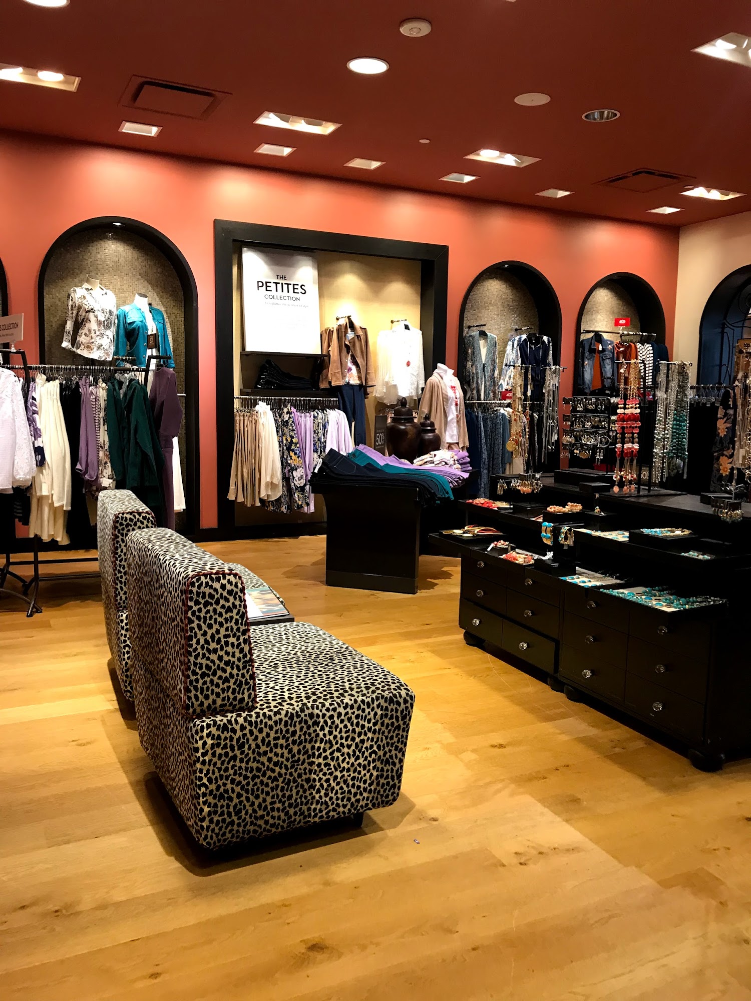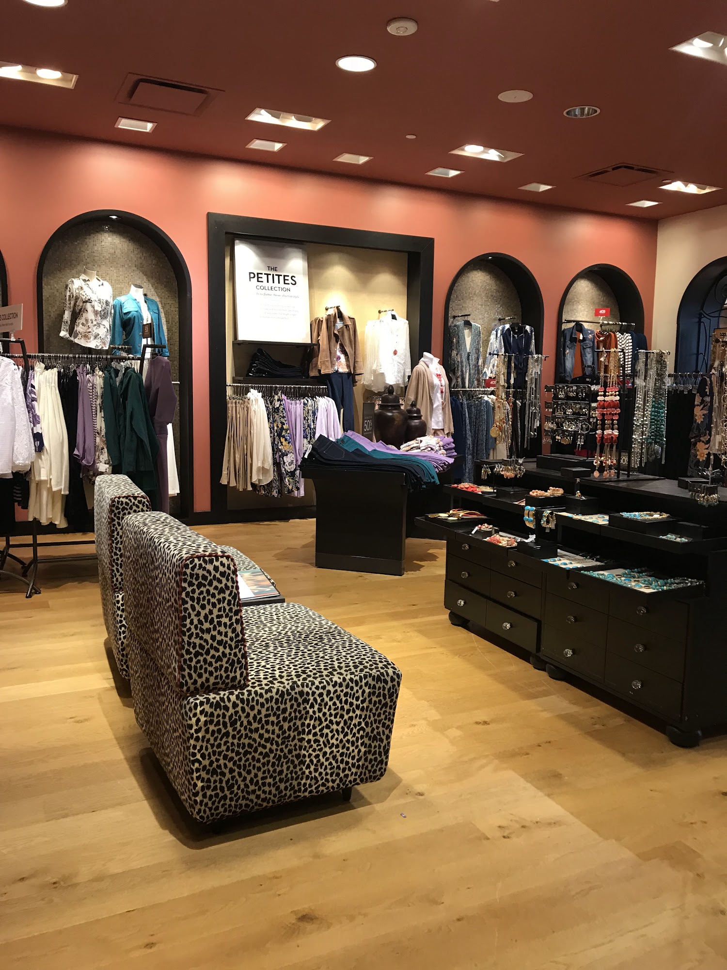 Chico's is a women's clothing store that offers a carefully selected collection of chic and unique clothing, jewelry, and accessories. Staff are professional and helpful, providing complimentary styling advice, fashion tips, and previews of new collections. Customers appreciate that the clothing always fits, even as sizes change. The store employees go out of their way to help, such as searching nearby stores for specific items. However, some find the color variety limited and feel the options at this location could be more diverse.