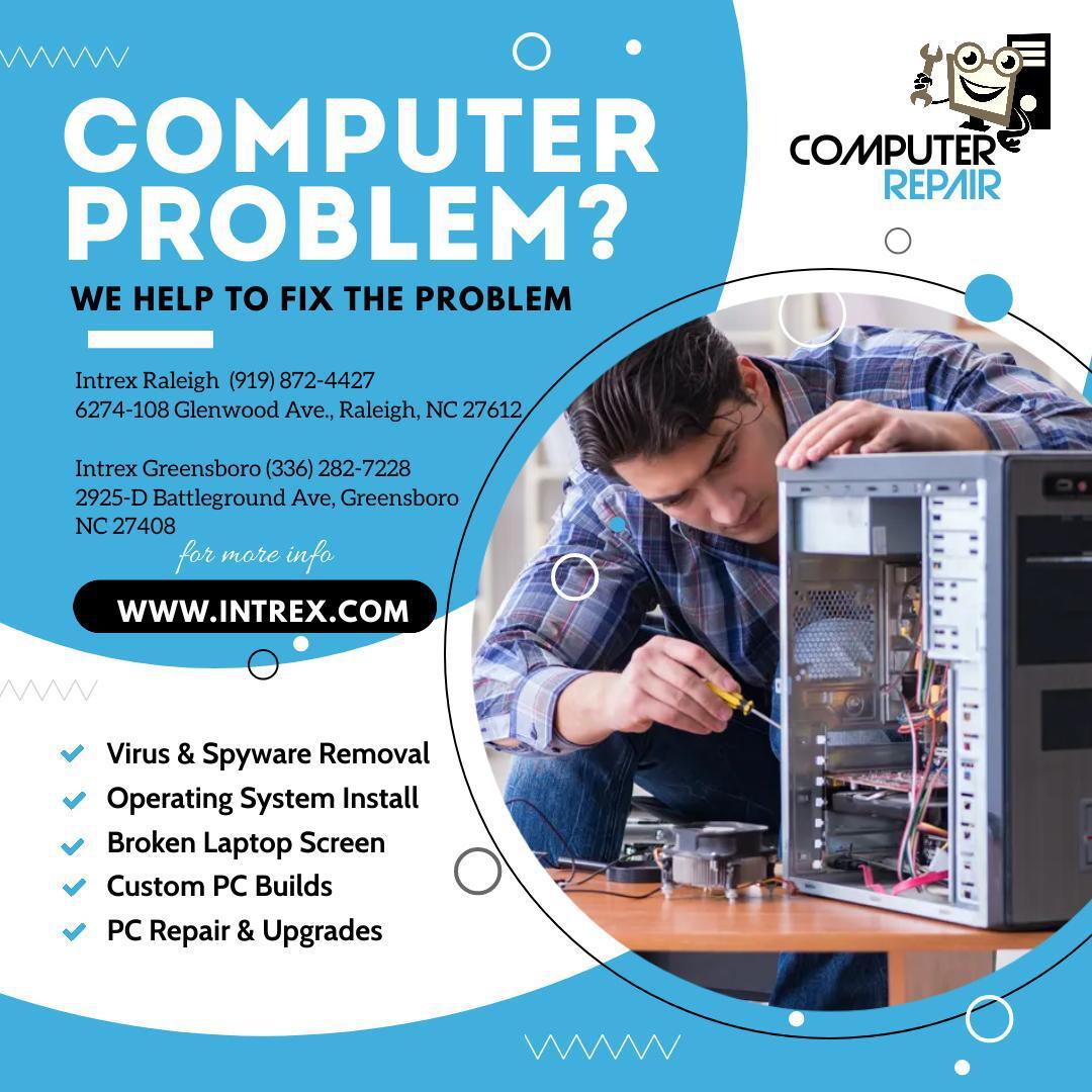 Intrex Computers is a computer repair service and custom pc builder located in Greensboro NC. The store configures computers to fit lifestyle and budget, offering gaming pc, graphic design pc, work pc or the option to build your own. It provides computer sales, repair services, and computer parts for individual and corporate customers. Repairs are performed in the Greensboro store and include desktop, laptop, notebook repair, upgrades, virus and spyware removal, data transfers, motherboard installations, drive and card installations, OS reloads and much more. The staff has diagnosed wifi signal problems, sold plug‑in cards and repaired them, fixed laptops that did not turn on after ram upgrade, and fixed motherboards after power‑surge. Customers describe the staff as friendly, knowledgeable and very helpful, and say the service is great, 10/10. Many customers buying all computer parts here instead of big box stores or online.