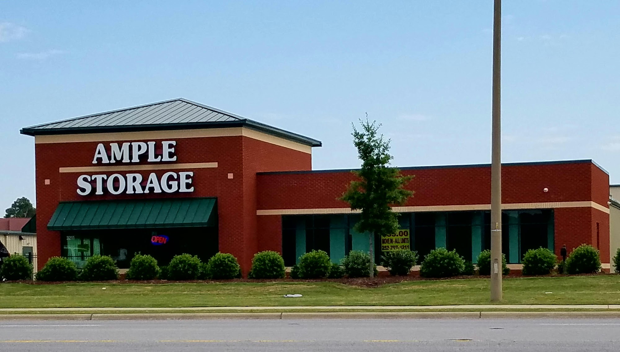 Ample Storage Center on 10th Street in Greenville, North Carolina is a convenient and clean self-storage facility near ECU. The modern facility features both standard and climate controlled indoor storage units with 10-foot ceilings, along with standard drive-up accessible units. Sizes range from 5×5 to 15×20. The property is secure with 24-hour camera surveillance, a gated community with keypad access, and an on-site manager. The staff is very friendly, nice, and helpful, providing amazing customer service and hassle-free assistance in choosing the best unit. The facility is described as great, clean, and secure, offering fair prices. Customers appreciate the easy access and the peace of mind that their belongings are safe, making it a great location for both short-term and long-term storage needs.