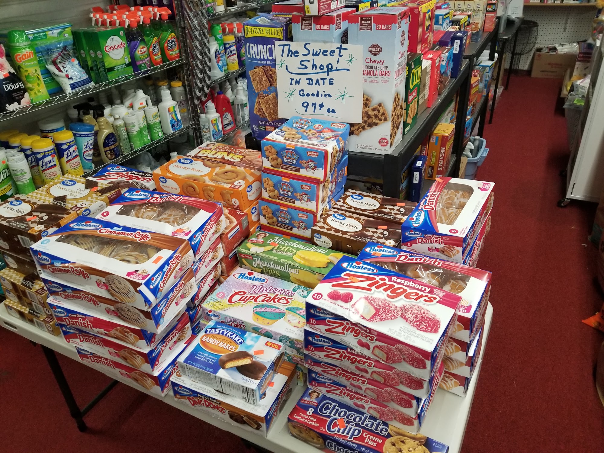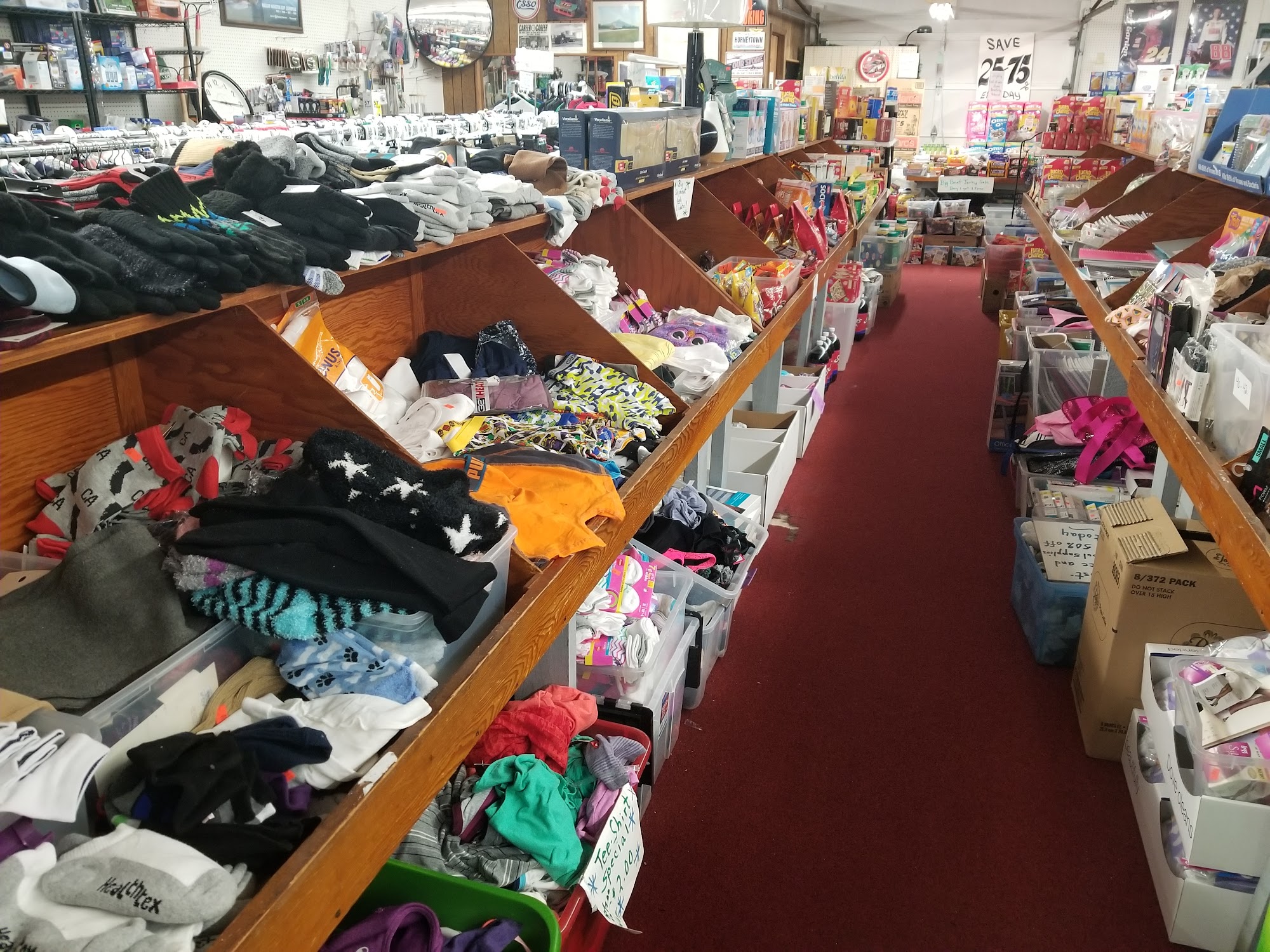 Great prices on snacks. Always a selection of snack foods, personal care items, bed pillows. They also have a clothing selection but Ive never checked the styles or prices.