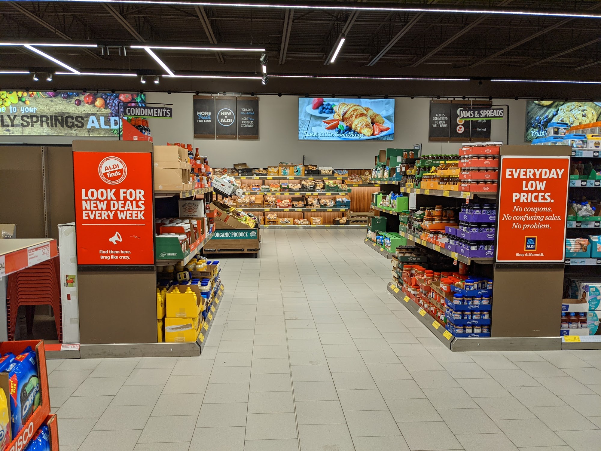 ALDI in Holly Springs offers a wide range of quality groceries and home goods at low prices. Customers can find fresh meat, seafood, produce, baked goods, and frozen treats, along with pre-made deli items. The store also features a variety of store brands that are surprisingly good, providing a good selection without being overwhelming. Many reviews highlight the store’s cleanliness, organization, and pleasant shopping experience, with courteous staff going the extra mile to assist customers. Shoppers appreciate the great prices, especially on produce, dairy, and snacks, often lower than other name-brand stores. The store sometimes has products that are unique or unusual, adding an element of fun to shopping. ALDI also offers special finds, including a notable selection of chocolates and cheeses, and some products like Winking Owl wine at very low prices, though some items may not meet high expectations. The store provides options for online ordering with curbside pickup or grocery delivery, making shopping convenient. A distinctive feature is that customers bag their own groceries and return their shopping carts, which some find efficient, though it may not suit everyone. Overall, ALDI is praised for its affordability, good variety, and friendly environment, making it a popular choice for many shoppers.