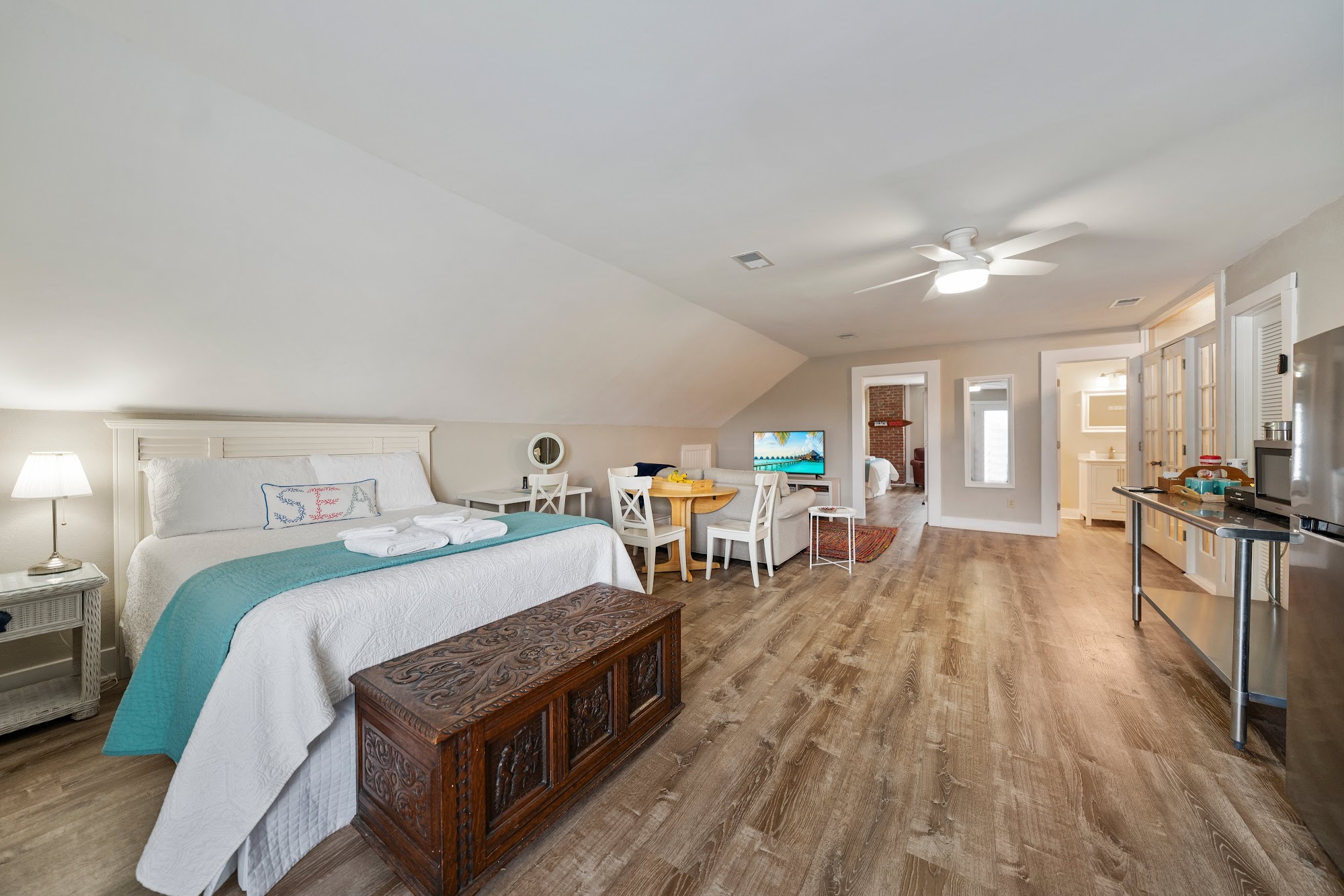 This is our favorite place to stay in the outer banks by far!! Bill and Veda, the owners, are wonderful people and hosts. Breakfast on the porch is great! The loft is perfect for our family of four with our own crows nest over looking the ocean. Going to the beach right across the street is easy as they provide chairs...