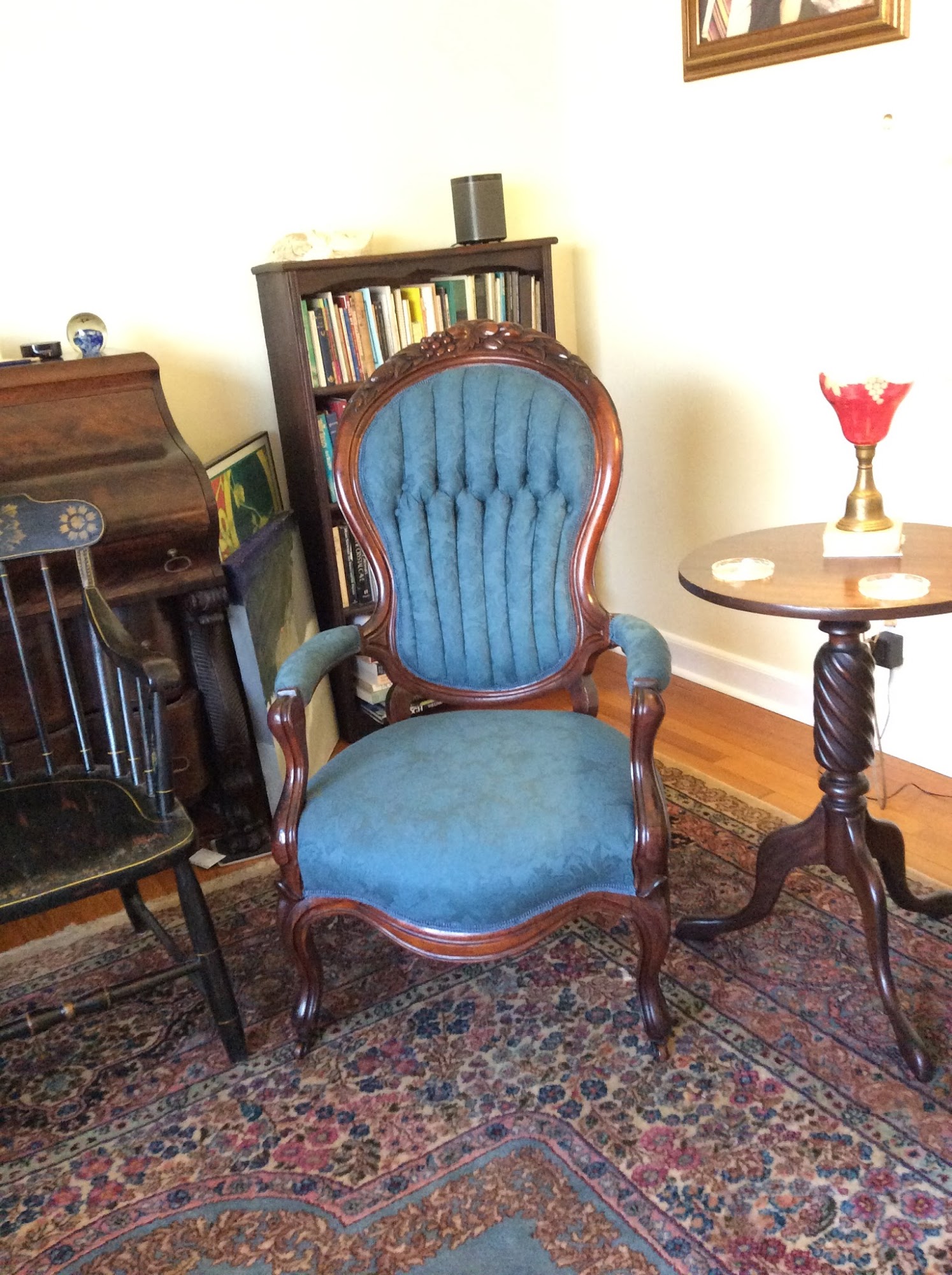 Look how my grandmother’s vintage recliner has been transformed! I am so grateful I made the trip down the mountain to Marion. Thank you again for preserving this bit of my family heritage.