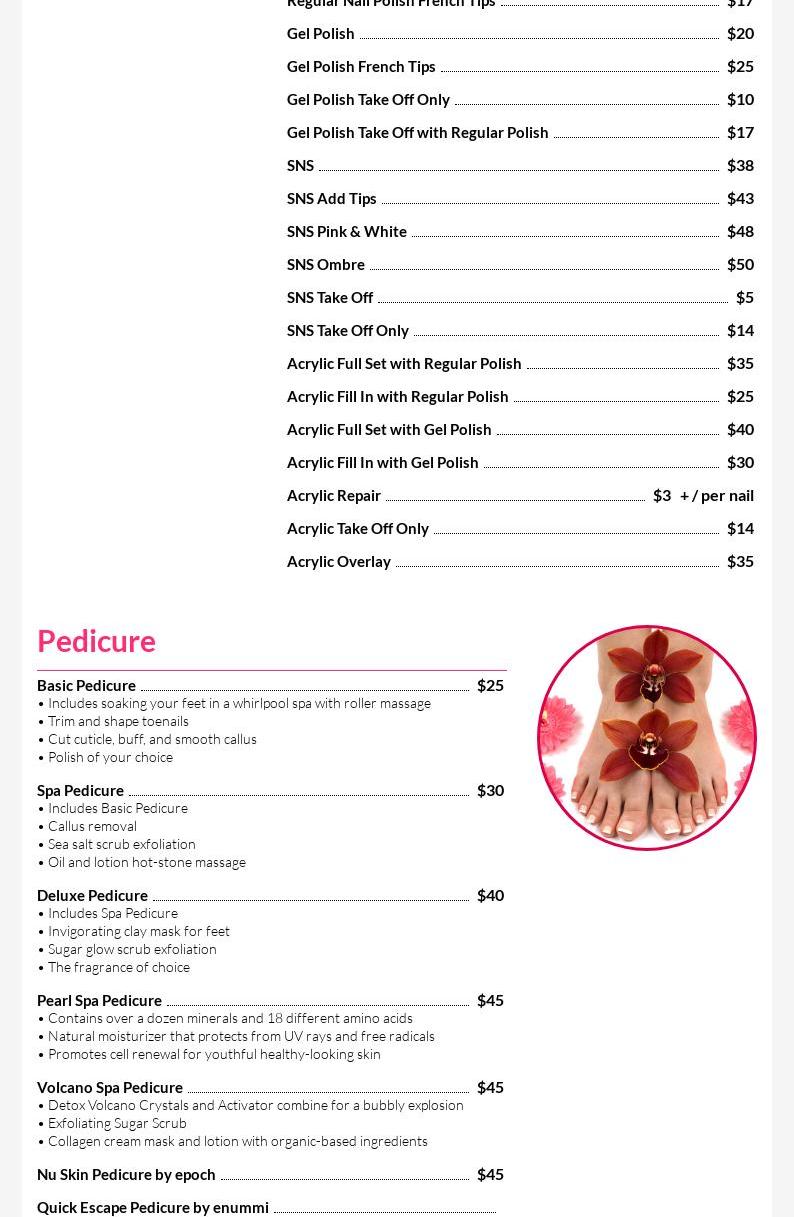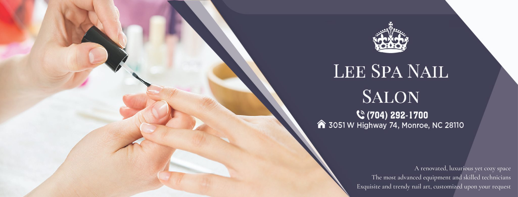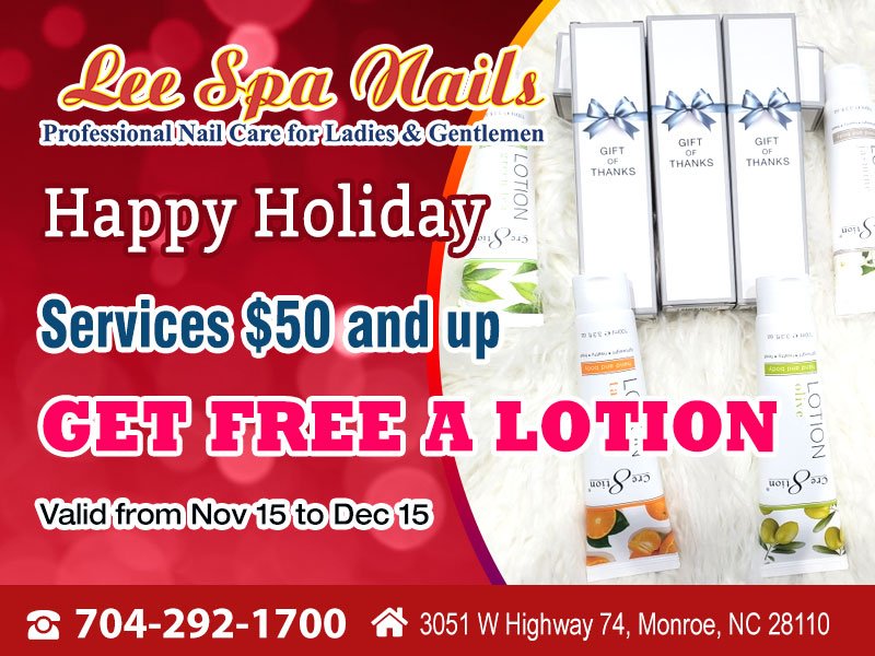 If you are seeking a nail salon where helps you to rejuvenate your beauty, Lee Spa Nails Inc is the ideal destination! Located conveniently in Monroe, North Carolina 28110, our nail salon is proud to deliver the finest nails services to our customers. Lee Spa Nails Inc combines a peaceful, Zen and beautiful environment and more notably for our qualified and certified nail technicians. Our staff is educated and trained to the highest professional level. We are always on top of the trends in the beauty industry making sure we are trained in the latest techniques and products. Our service and dedication to our clients are unsurpassed.