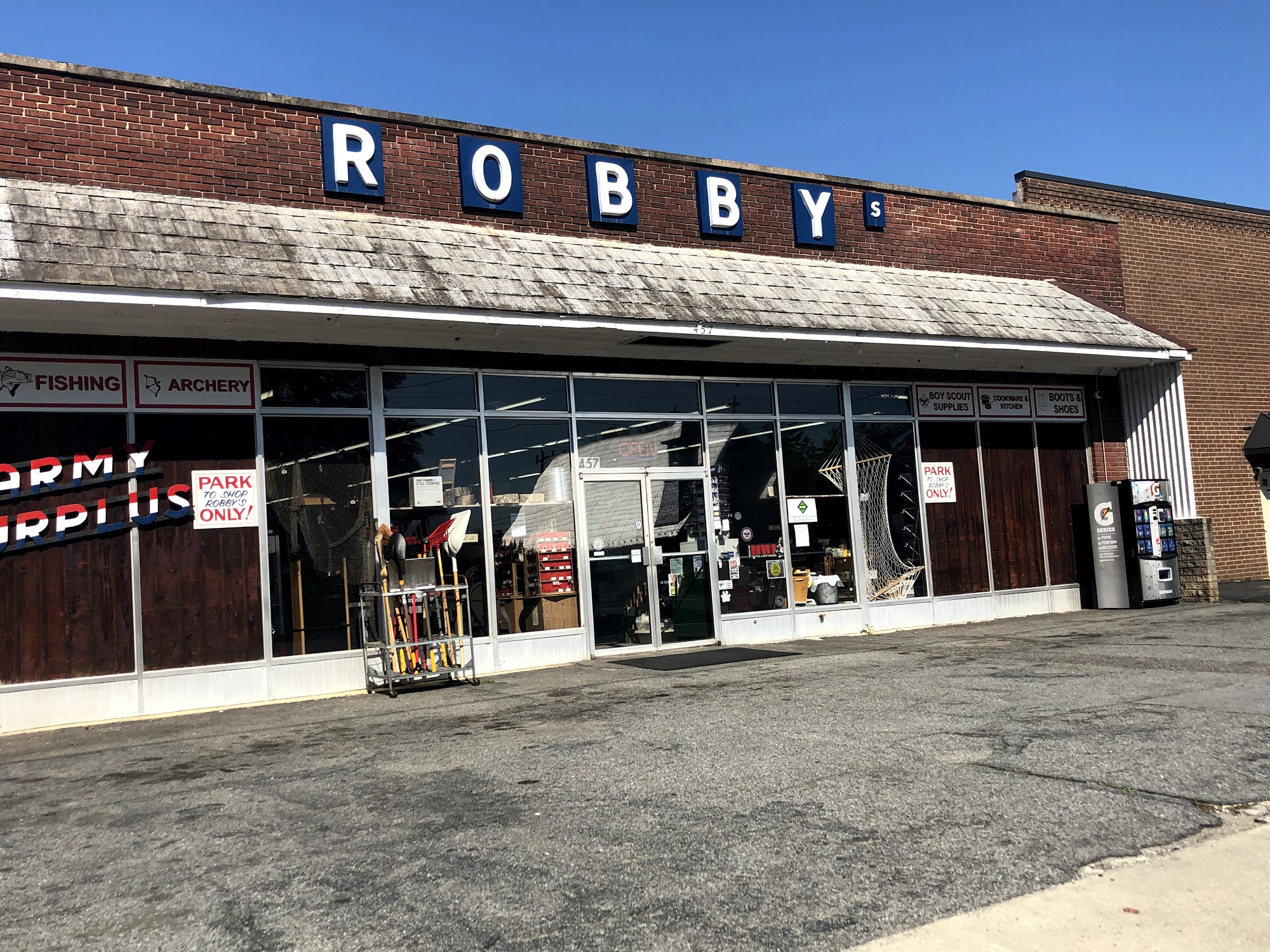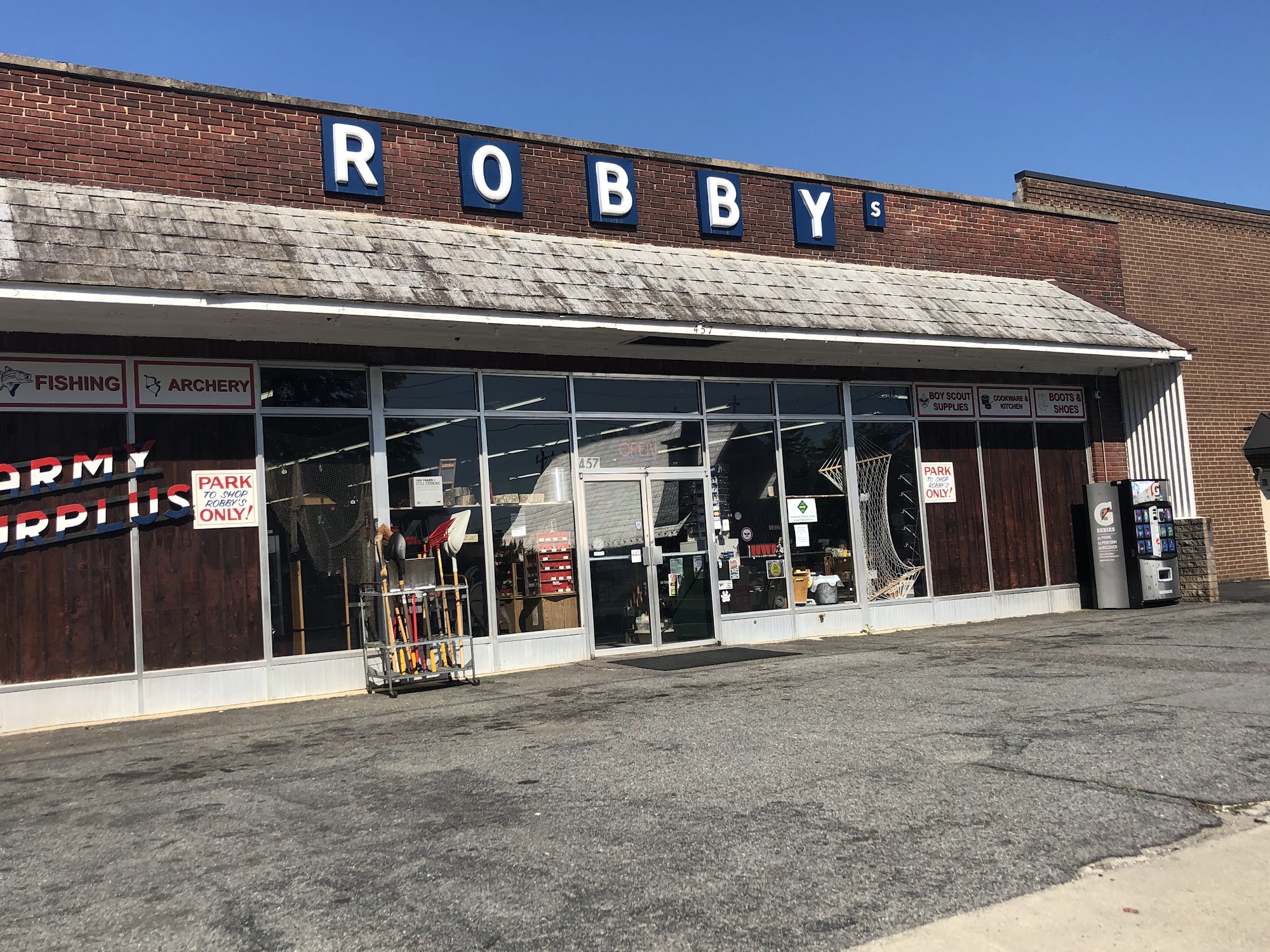 Robby's Sales is a well-stocked surplus store in downtown Mount Airy. It is a staple establishment and a good store where you can get everything you need. The store offers a vast selection for camping, fishing, hunting, hiking, barbecuing, military surplus, personal and home defense, and other outdoor activities. It carries stuff you didn't think was made anymore at reasonable prices. Customers find it a great place to find what they need and have been going there for years. Thankfully, the salesfloor associates are helpful. However, there are significant concerns about the manager. Multiple reviews state the manager is a jerk and is misogynistic, speaking down to female associates and treating people poorly. Customers report the manager does not deserve the position and that the owner needs to address this behavior, as a manager should be a responsible and caring individual. Despite this issue with management, many customers enjoy exploring the intriguing store and often leave with less money than they had, finding just about anything they could possibly need.