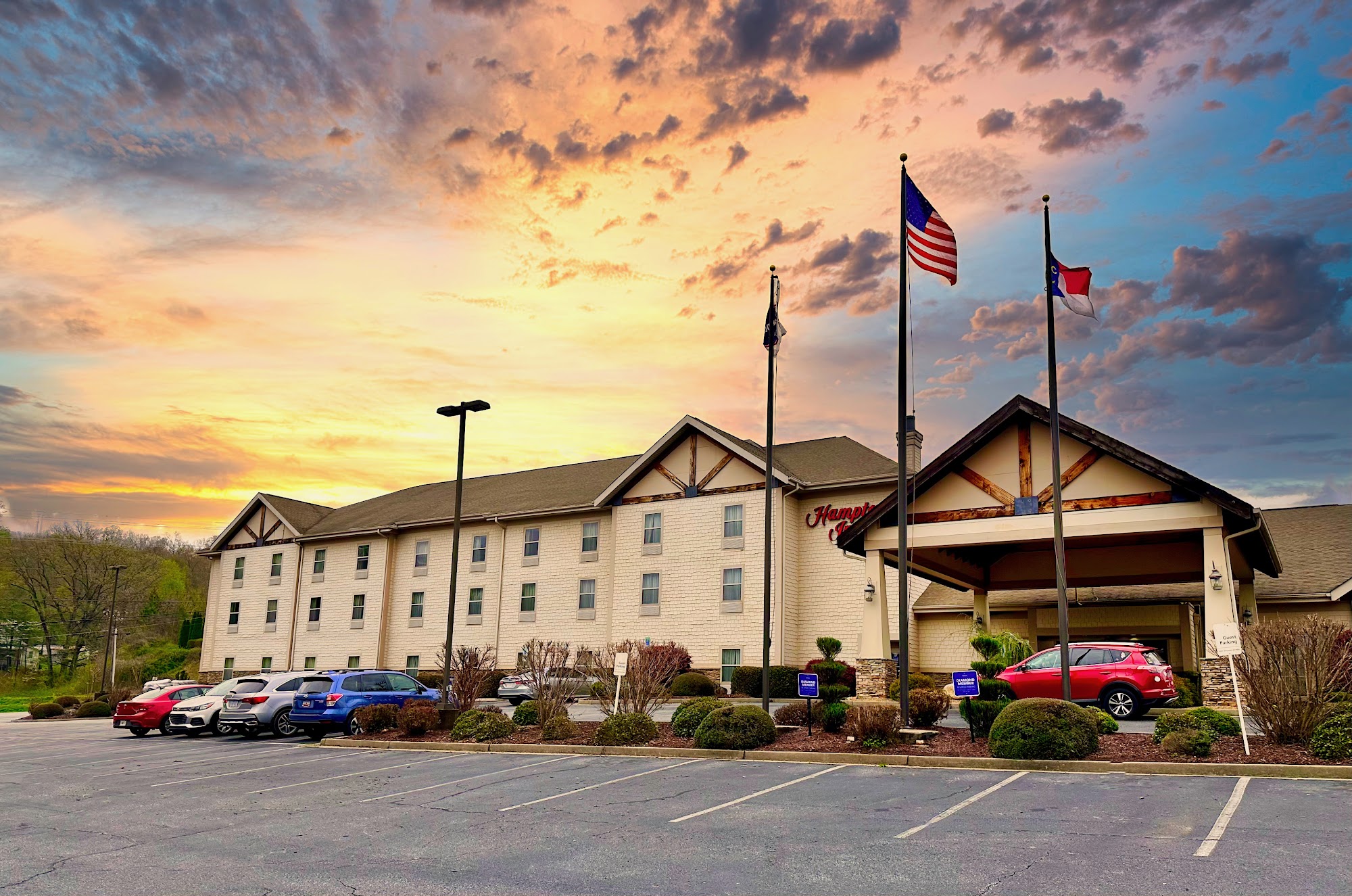Good location with easy access. The hotel was nice and the desk staff were nice. The 3 stars were for the breakfast that wasn't on par with other Hamptons and the towels needed to be discarded. They looked wore out.
