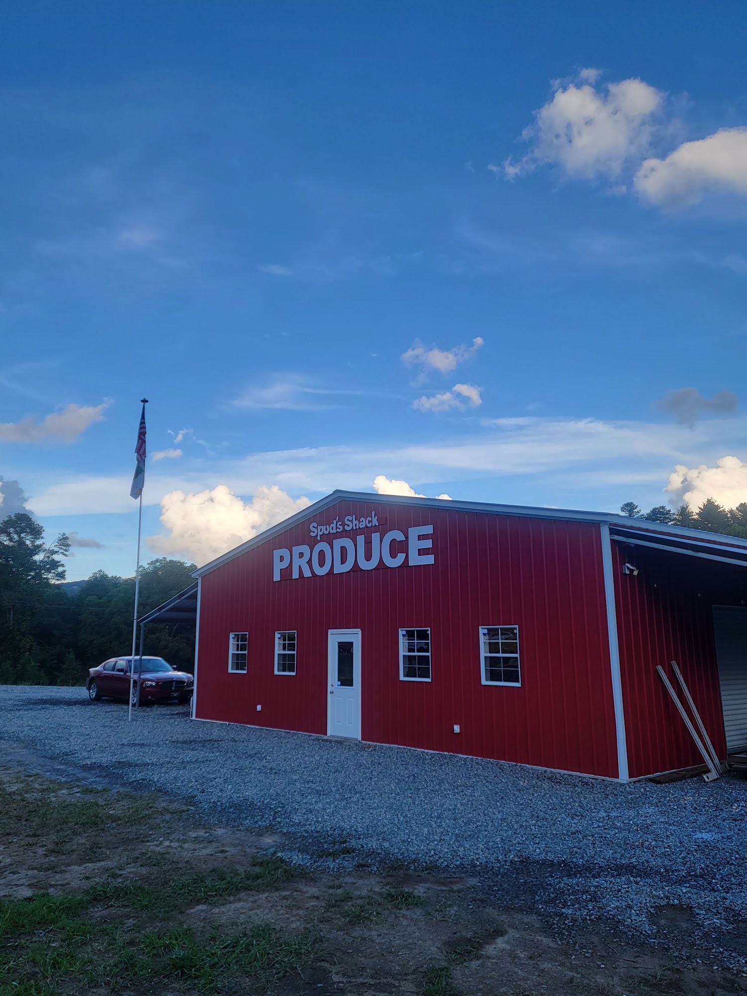Spuds Shack is a great place and interesting little store in the Murphy, NC area. It is a produce stand with a little bit of everything, offering local produce and locally stocked items. The selection includes fresh fruits and vegetables, locally sourced meats, and canned or jarred goods like honeys, jellies, jams, and pickled items. The produce looks fresh and is well kept, with better prices than grocery stores. The owners and staff are outstanding, very professional, super friendly, and helpful. The establishment is also holiday oriented for great product and photo settings. It is a terrific place to shop local and is certainly worth the stop.
