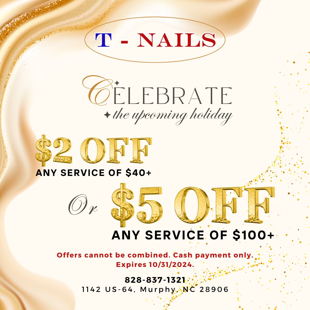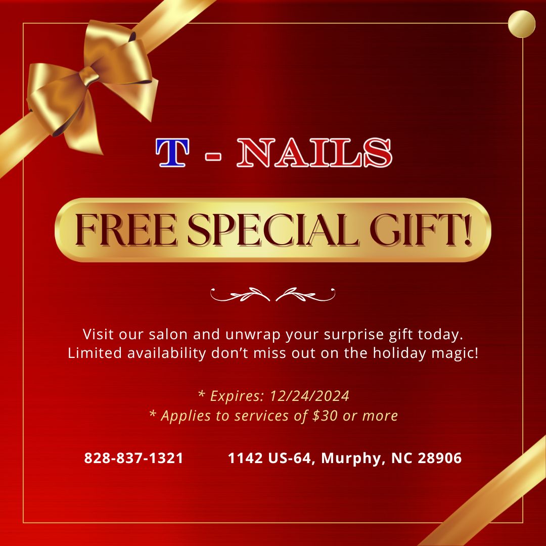 T-Nails in Murphy, North Carolina, is known for providing quality nail salon services and a friendly atmosphere. The talented staff, including owner Billy, aim to make each client feel comfortable and special. Customers appreciate the consistent results and the reasonable prices for nails and pedicures. The salon offers services such as the popular cat-eye nails, and clients often praise the excellent service with no long waiting times. Safety and cleanliness are priorities, with staff carefully sanitizing tools and maintaining high standards of infection control. The team is attentive and strives to get everyone in quickly, ensuring a positive experience. Many clients have been returning for years, highlighting the professionalism and care provided at T-Nails.
