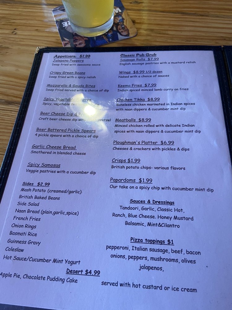 Stopped in at 8:15 pm desperate for food after a long day on the trails. Wasn't expecting much, thought it was just a local British pub. Was blown away by the Indian food. Had the tandoori flatbread and wife had the chicken curry. AMAZING. Super nice people. Great beer selection too.