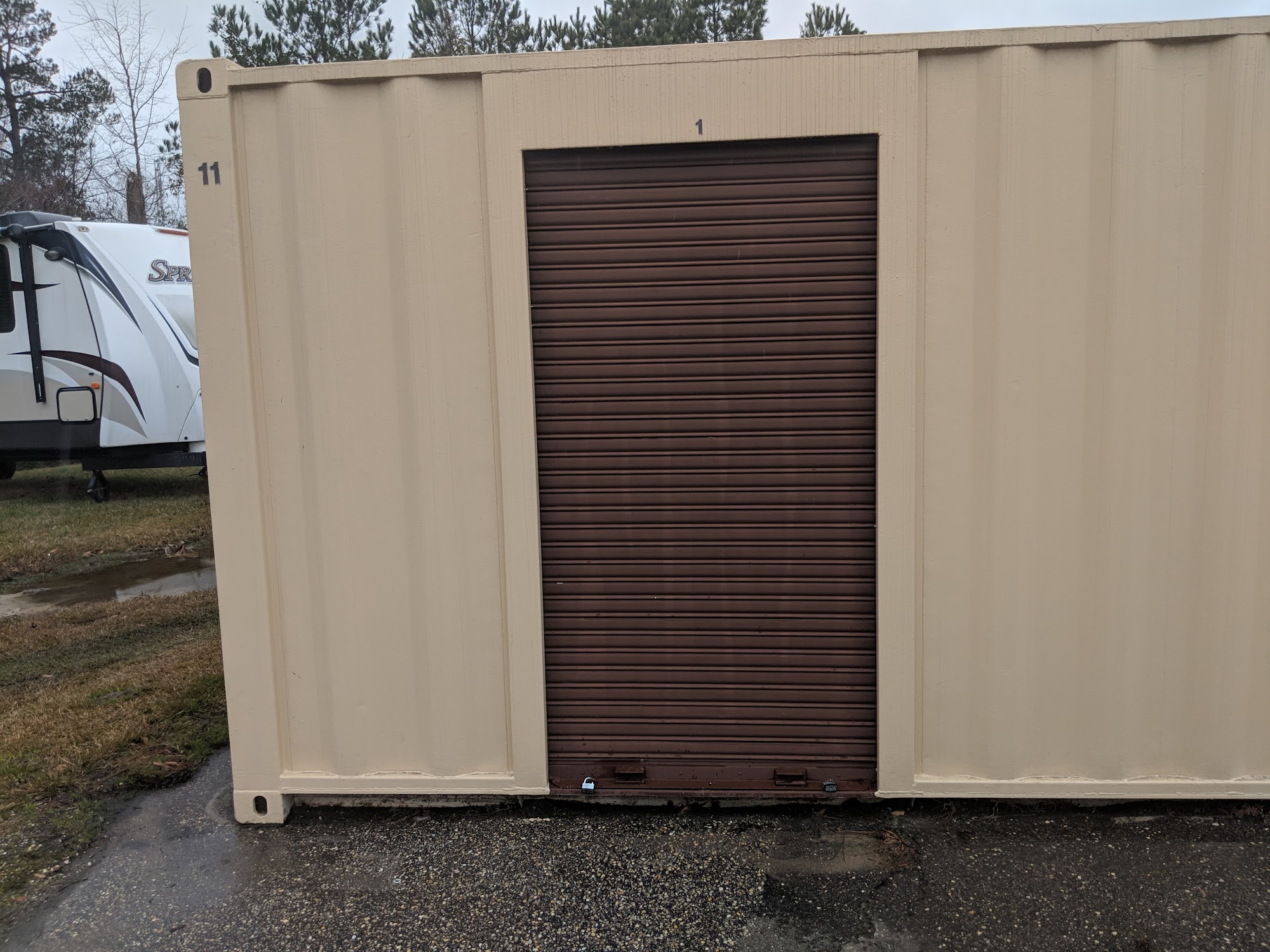 Price $75/month for 8x10 ft portion of a larger storage container. Obviously none climate controlled. You rent by visiting the recreational equipment rental at Smith Lake. As far as I can tell if you can get on base you have 24/7 access to the area. I think it could be a little cheaper for what it is.