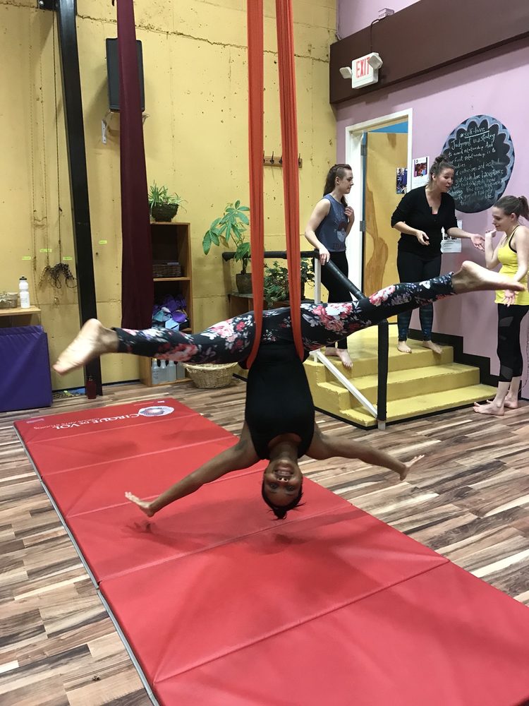 Friendly staff, unique space, easy parking for a 5:45 class, great experience for someone new to aerial yoga