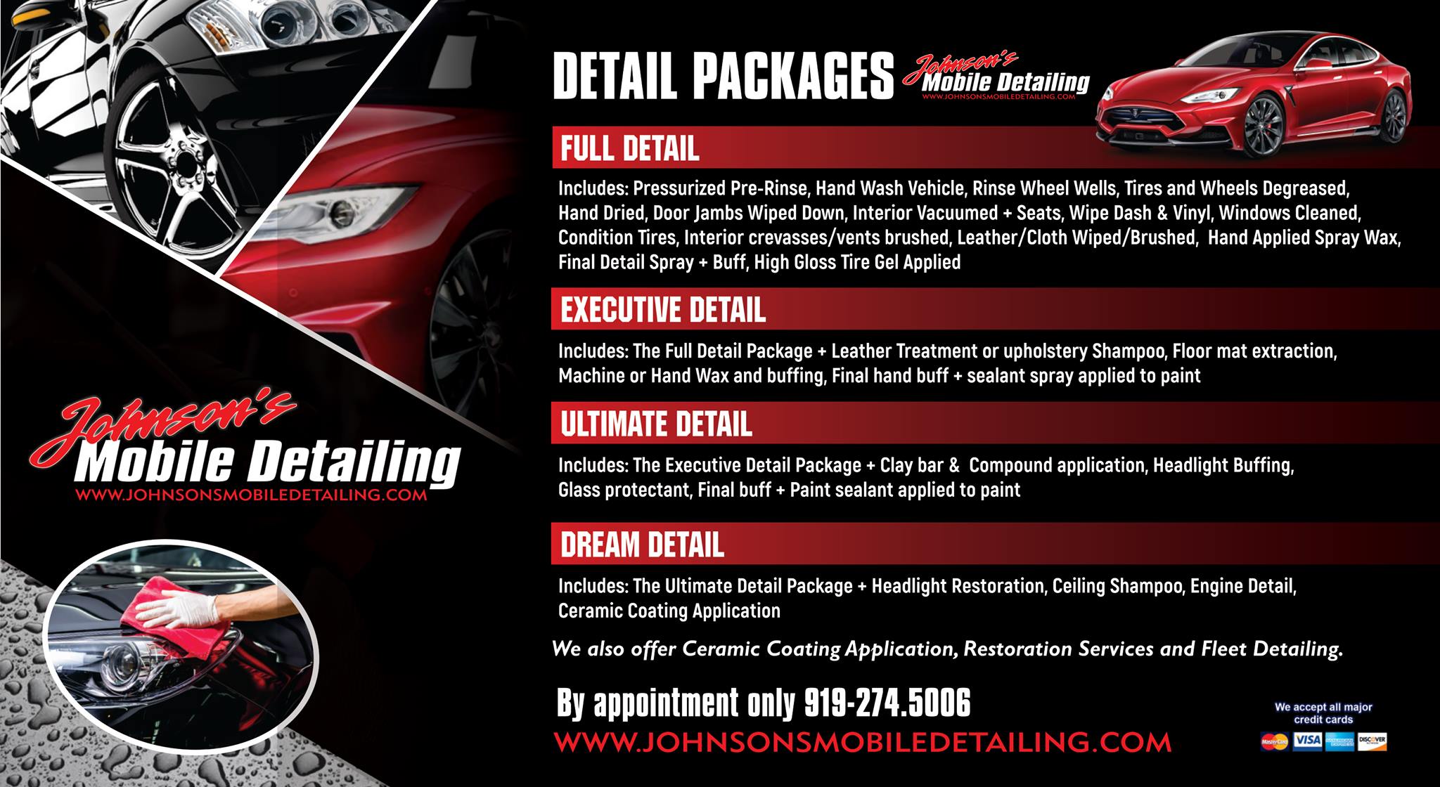 Johnson's Mobile does an amazing job with our cars. Cam and his team are detail oriented, timely, and great communicators whenever we are scheduled with them. We appreciate the personal attention and most importantly, our cars look outstanding!