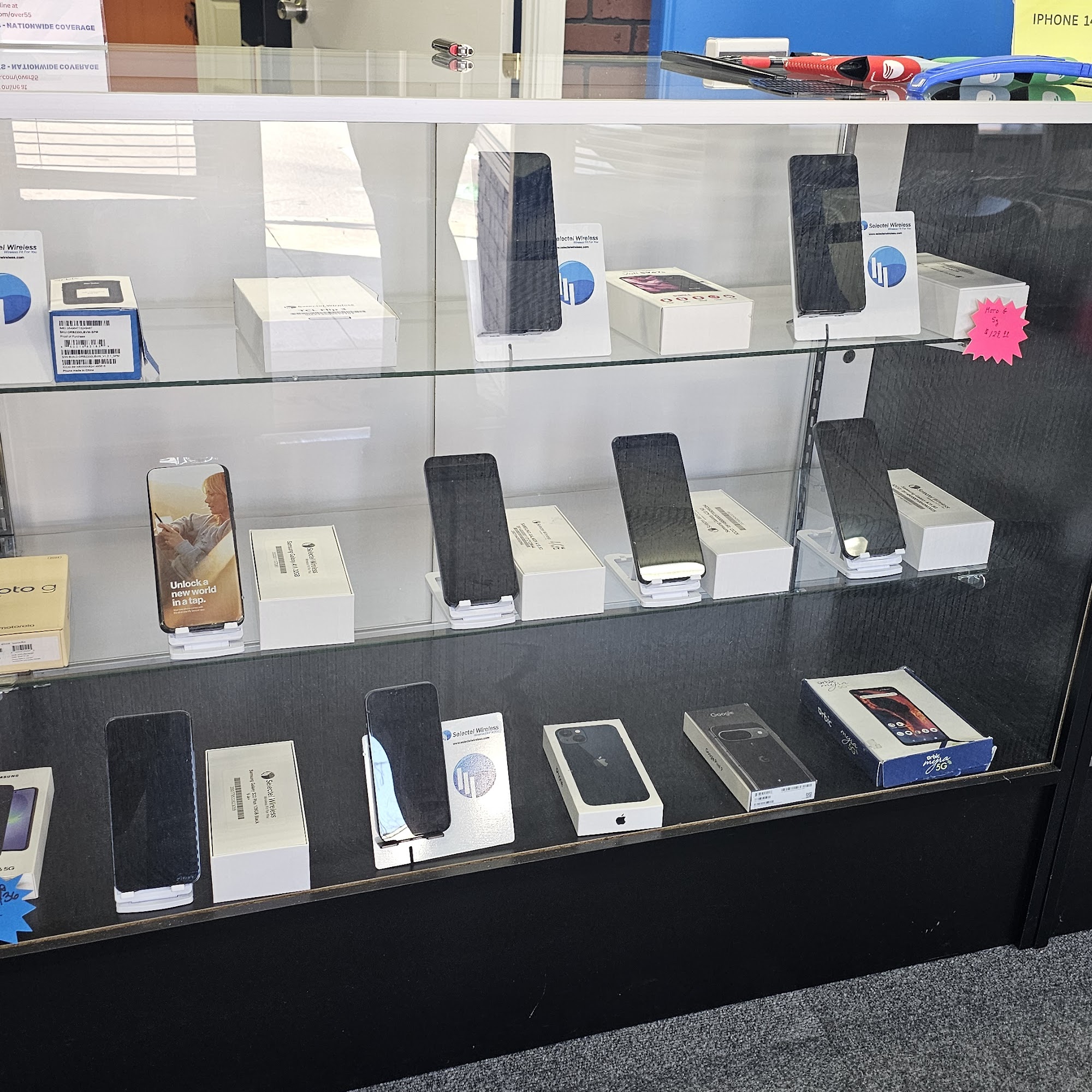 Selectel Wireless offers affordable no-contract phone plans, same-day device repairs, and unbeatable promotions. New customers or those adding a line can get a FREE smartphone plus 2 months of service FREE on the nations largest and most reliable network. We have a huge selection of accessories including screen protectors, liquid glass, sd cards, bluetooth speakers, earbuds, airpods, and more. We also repair cracked screens, batteries, and charging ports on phones, tablets, laptops, and gaming consoles — fast and professionally. Walk in or call us today to learn more!