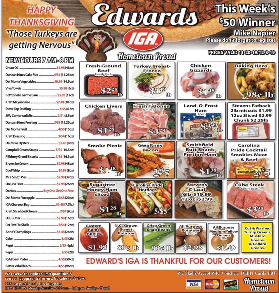 Edwards IGA is a well-established local grocery store in Wadesboro that has weathered the test of time. Customers praise the friendly and helpful associates, who go above and beyond to assist shoppers, even offering carry-out services. The store boasts a welcoming atmosphere, with cashiers who are attentive to customers' needs, such as providing coupon information. Described as a "peaceful old-time IGA," the store offers a convenient and enjoyable shopping experience, with decent product selections. Customers express their appreciation for this local business and hope it continues to thrive, employing and supporting the community.
