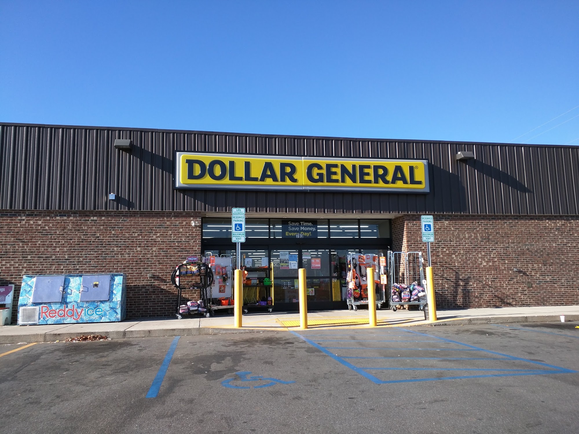 Hardly ever a wait in line. More items compared to the other DG's around. Friendly service.