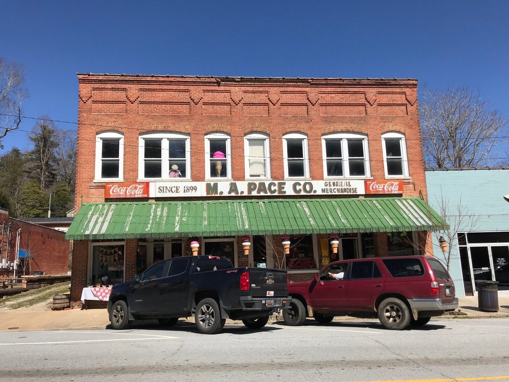 M A Pace General Store is a step back in time, offering an old time feel from a different era. It is an interesting general store that has been opening its doors continuously for 124 years, looking much the same as it did over a century ago. It functions as a museum, antique store, ice cream counter, and hardware store all in one, a great spot to see and look around. The store carries thousands of traditional and contemporary items. It still has staples like bread, butter, milk, and bananas, alongside other essential items for mountain life such as local vegetables, jams, honey, preserves, homemade salad dressing, salsas, and odd items like migraine powder. It also offers rakes, paint, and plumbing supplies. The interior is filled with mountain memories and memorabilia, including the old original scales and carts and an operational 1913 cash register. Visitors enjoy Southern hospitality and ice cream from the counter. The staff is always friendly, and the atmosphere provides a great experience and fellowship, making it a living history lesson on the area.