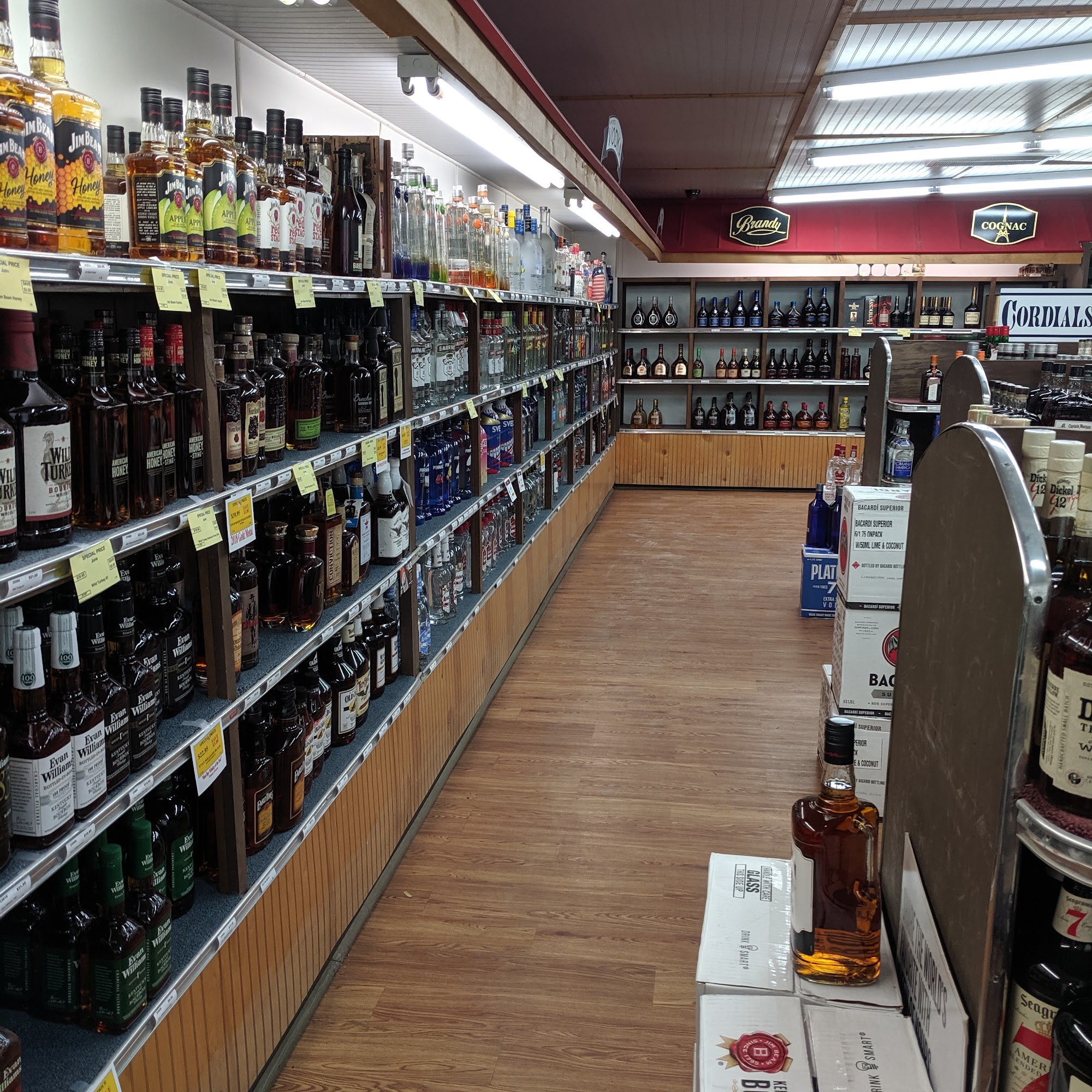 Clean, well laid out store. The associate was very friendly and helpful. Good prices on the spirits and even better on the sale items. Look for the bright neon yellow/green tickets for the sale.