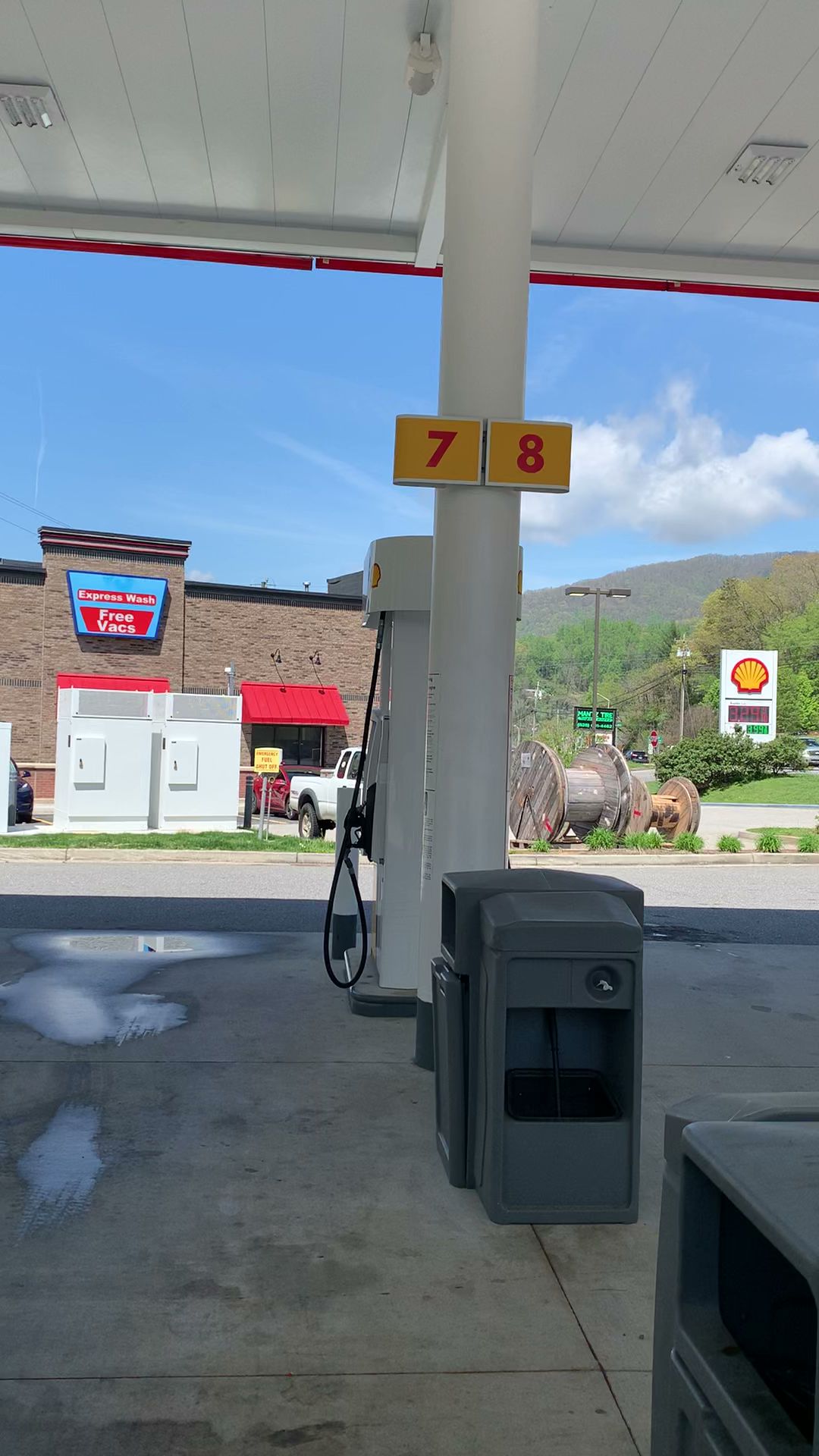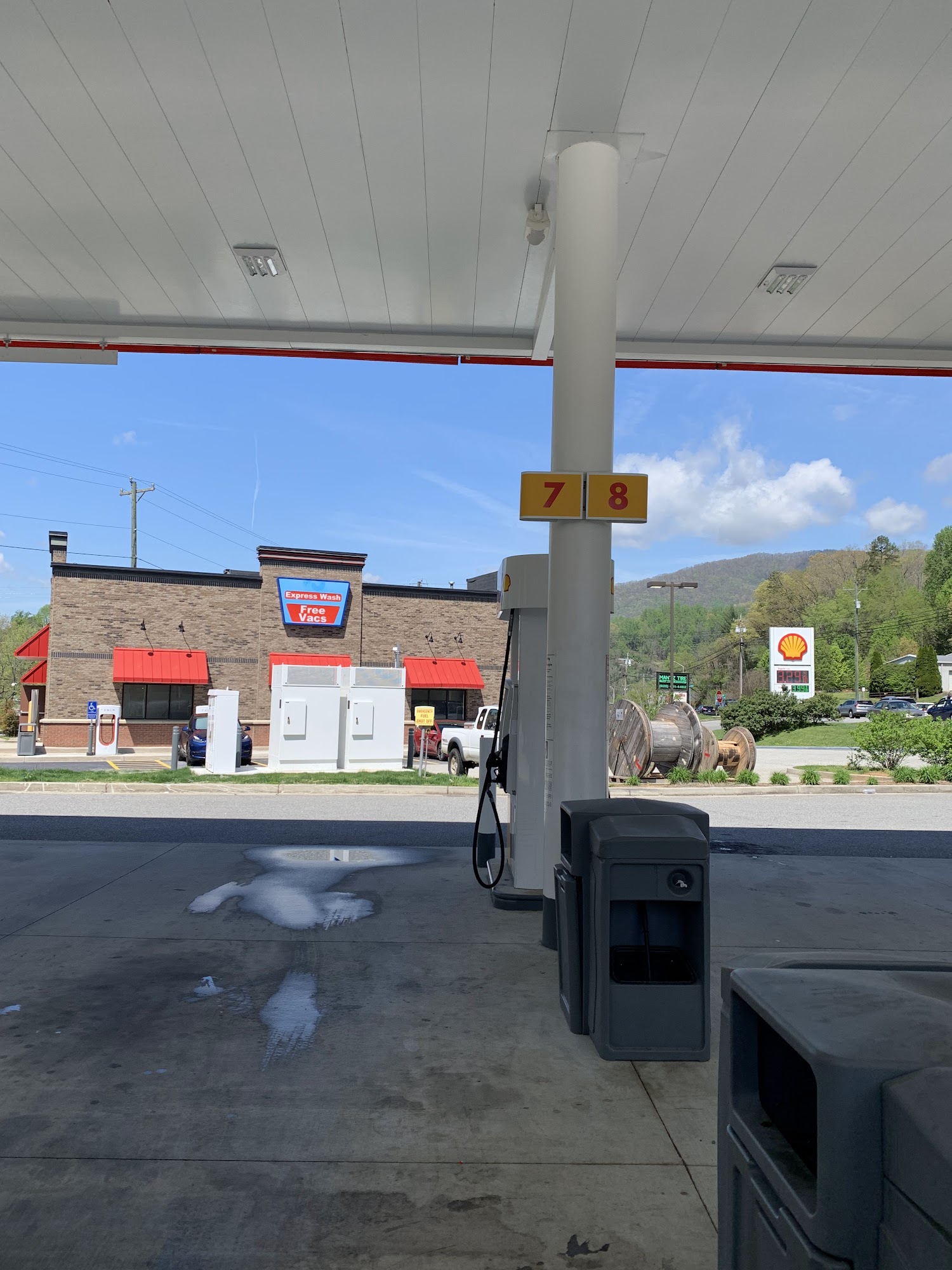 There are 14 fuel pumps at this gas station it is easy to fill up and go.