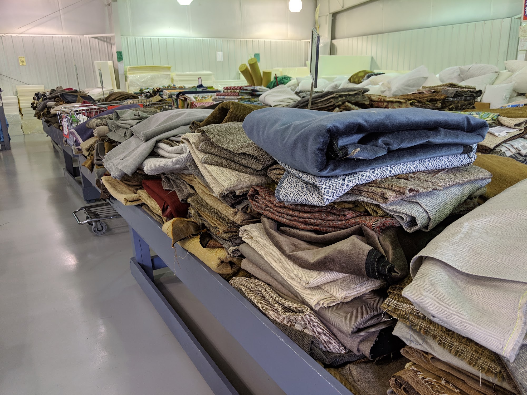 Remarkable upgrade in store. Best selection of upholstery fabrics ever. Quilting fabric also. Best whites for quilting ever. Very helpful staff. Have upholsterer on staff too.