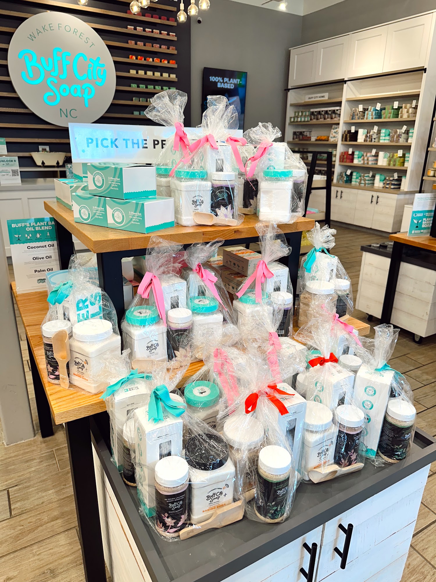 Discover a world of wonder with our delightfully scented, plant based goodies at Buff City Soap near you in Wake Forest, NC. Made fresh daily at our soap makery, each of our bath and body products are crafted with the highest quality and care, and free of parabens and phthalates. Indulge your senses and explore our collection of fragrant Bar Soaps, colorful Bath Bombs, nourishing Body Butters, Salt Soaks and Shower Oils, soothing Candles and Wax Melts, Laundry Soap, and more. Whether you're in search of a refreshing fruity aroma or a seasonal favorite, our handmade soaps are sure to add a touch of magic and whimsy to your day. Visit our soap store near you and treat yourself with a Buff City Soap creation today!