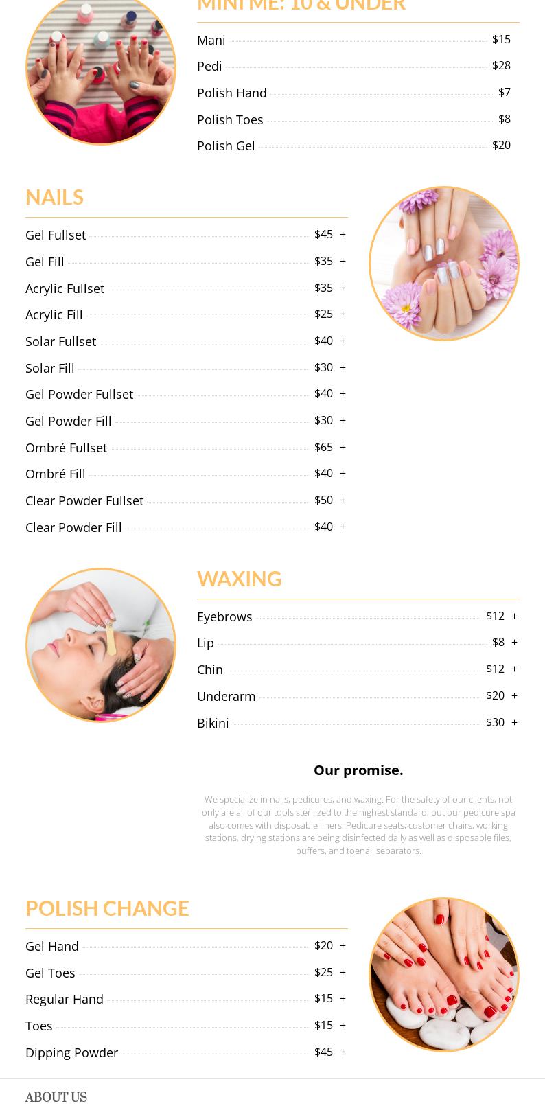 Nails Colure & Spa understands that Safety and Sanitation are very important to customers. Our implements, equipment, and electrical instruments are always thoroughly cleaned and subjected to an approved sanitizing and disinfecting process before being reused. Buffers and files are used only once, then discarded. All pedicure procedures are performed with liner protection. Our staffs were trained to follow a proper sanitization protocol that puts our customer’s cleanliness as the number one priority. Come to Nails Colure & Spa today and see how we can make a difference in you!