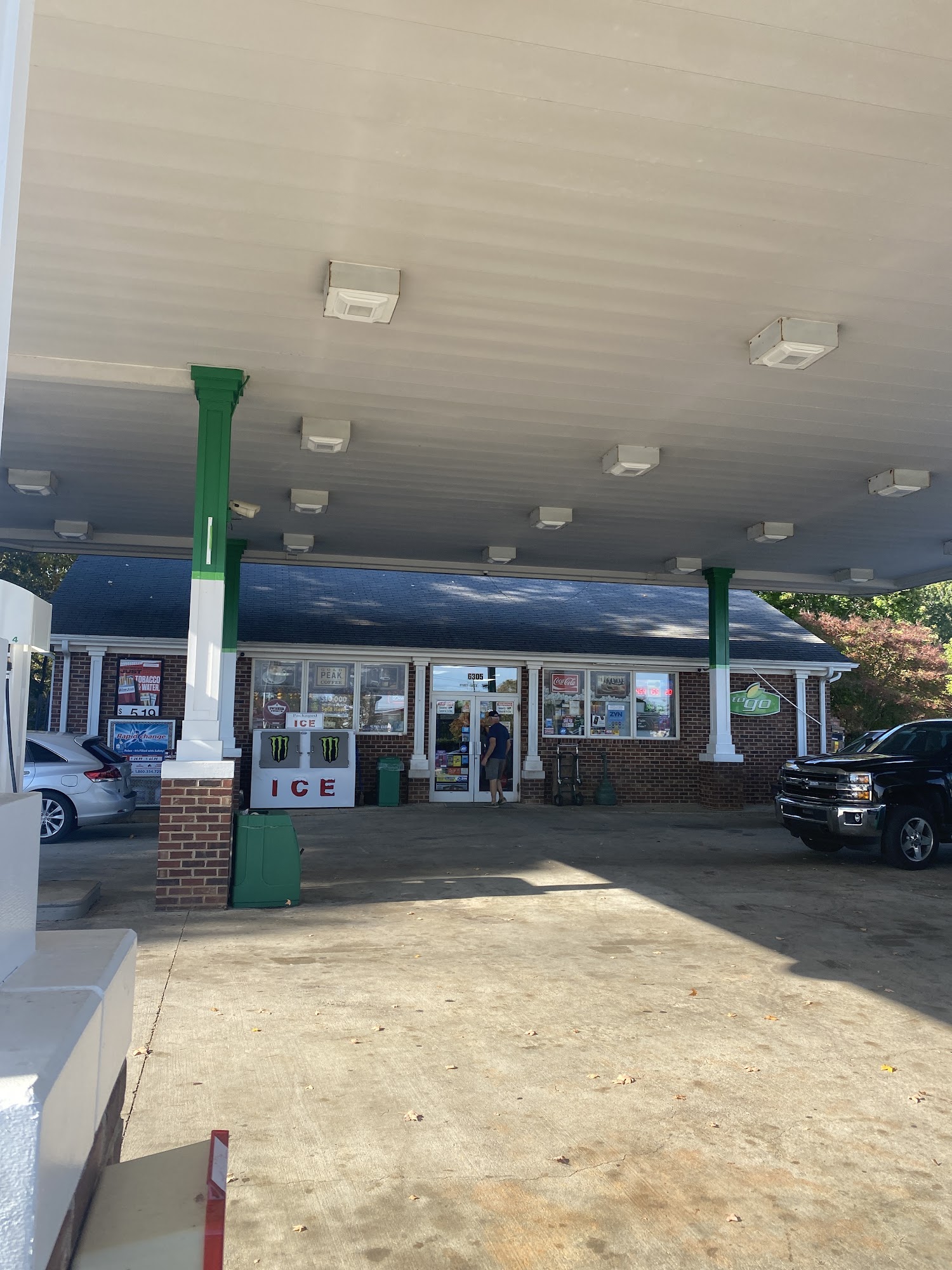 Easy in and out for gas and getting other little items when stopping before you had the road.