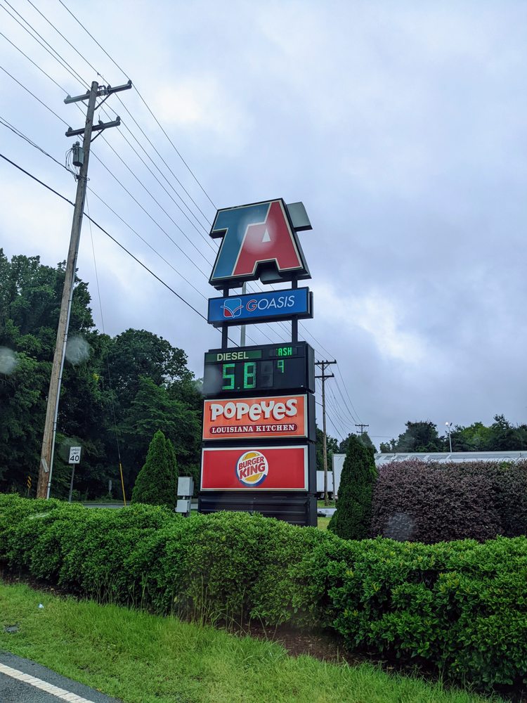 Very difficult to access currently due to construction out front. Inside is your typical truck stop interior. Staff is mediocre on the hospitality level. It's a gas station. If you don't like this one there are many many more to choose from alongside the interstate. They are a dime a dozen!