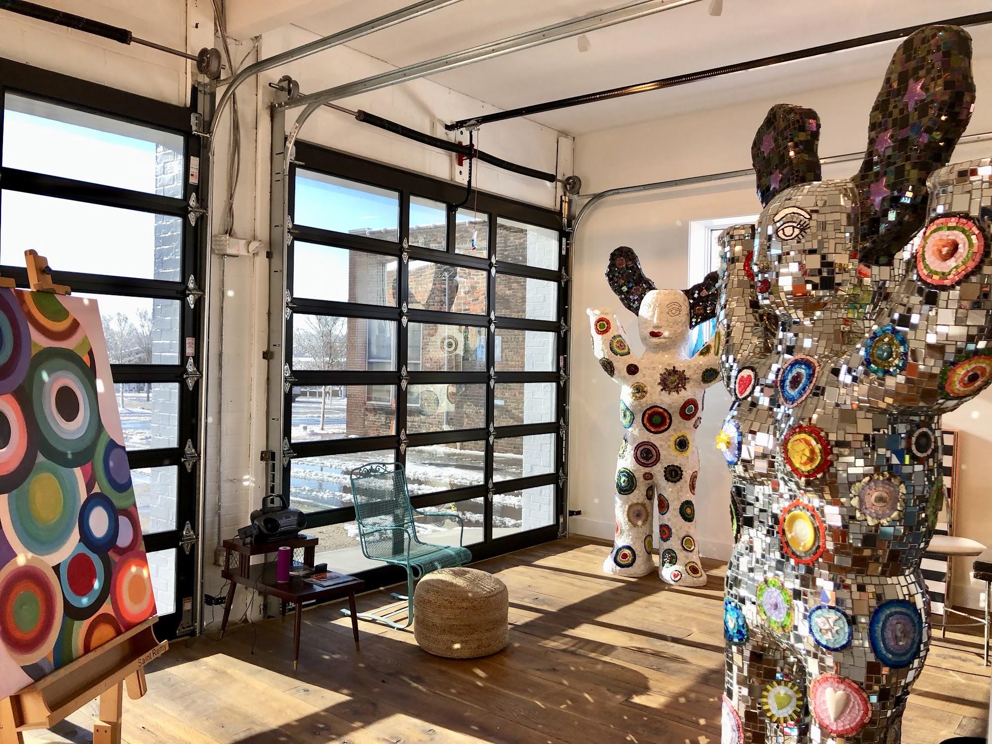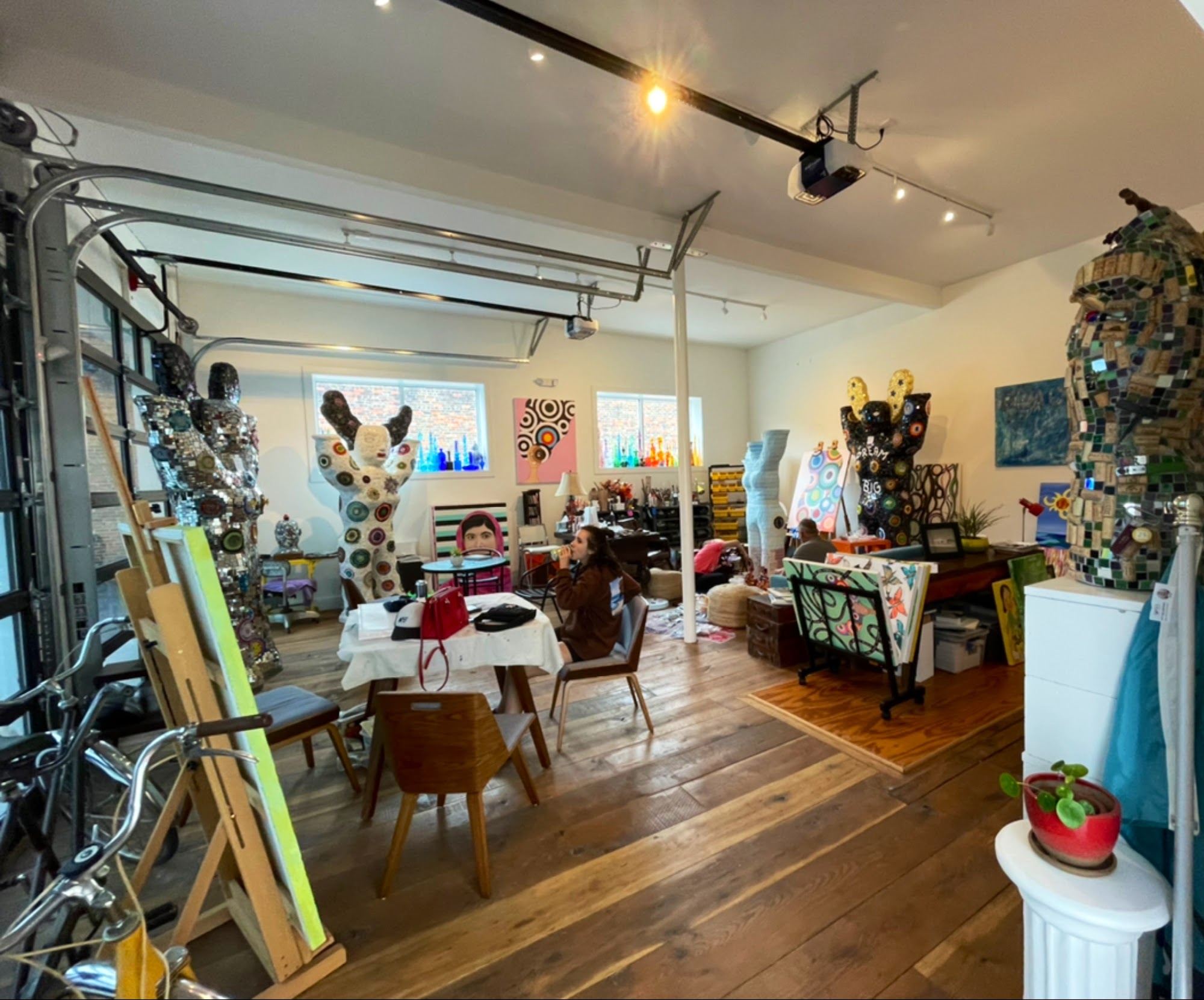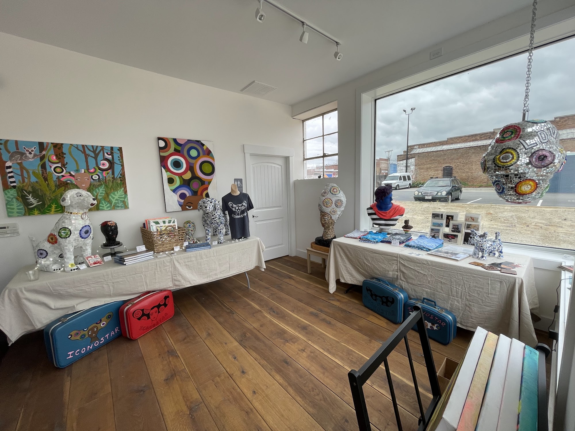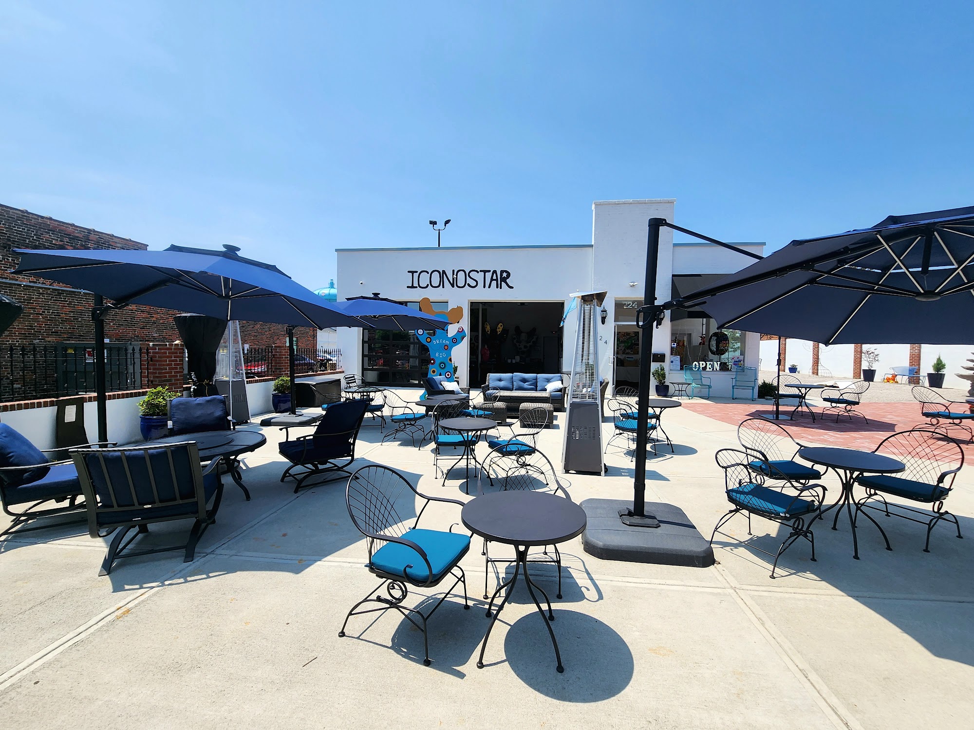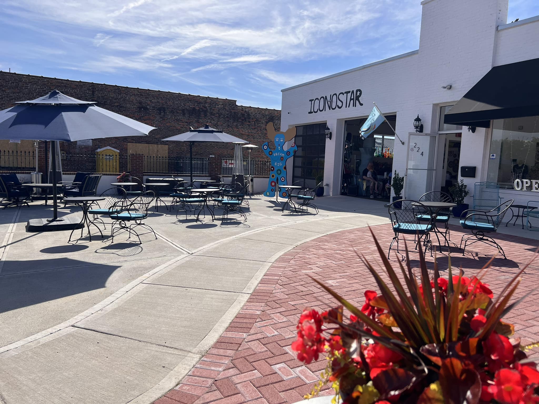 Iconostar Art is a contemporary art gallery and working studio in downtown Wilson, NC, described as a wonderful art oasis and amazing gallery. It features larger-than-life Iconostar sculptures, colorful and inspiring paintings, and amazing pieces of all sizes. The space is a pleasant place with very positive and inspiring outside art, a beautiful courtyard, and an art park. Visitors can enjoy a beverage, including wine, beer, and nonalcoholic options, while taking in the view of the adjacent Whirligig Park. The gallery is a welcoming place with good vibes, where one can sometimes enjoy events with music, food, and drinks. It is open regularly on Thursday afternoons and evenings and by appointment.