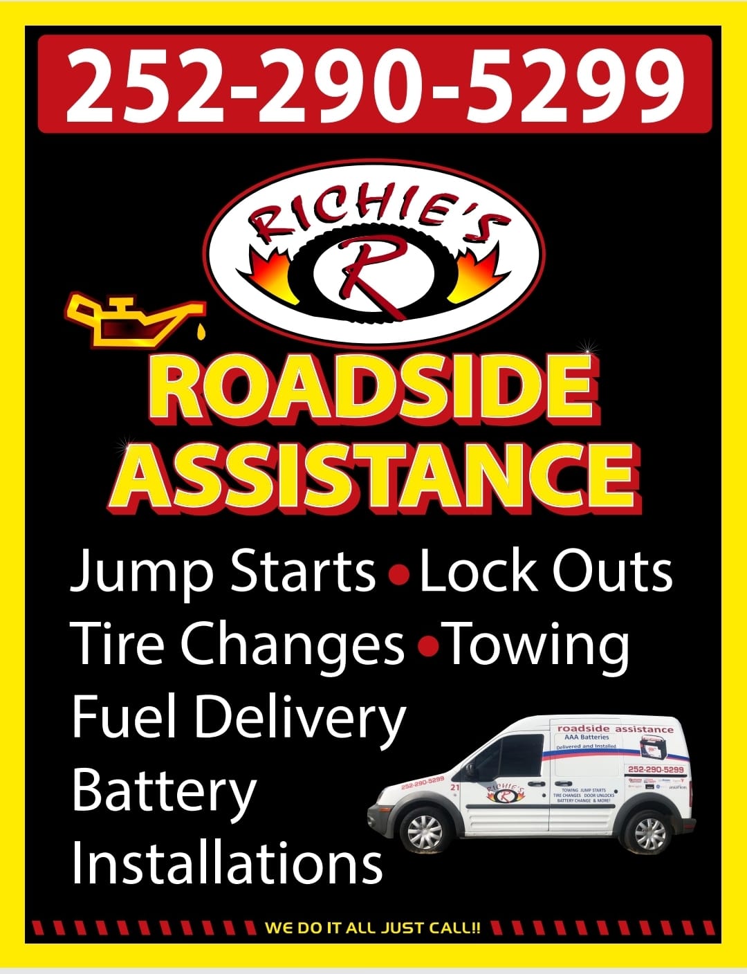 Richie's Full Service & Roadside Assistance is a local towing company that provides 24-hour towing services, roadside assistance, auto repair, and equipment hauling in Wilson, Rocky Mount, Goldsboro, and on I-95, I-795, US-264, and US-301. Their services include off-road recovery, jumpstarts, car door unlocking, tire changes, long-distance towing, and specialty car towing. Customers have praised the company's prompt, professional, and polite service, with one reviewer describing the technician, Antonio, as "a gentle giant" who assessed the problem quickly and accurately. Another reviewer, Mr. Hill, expressed gratitude for the excellent service he received when getting his vehicle moved to his mechanic. The company's fleet could use some updating, but overall, customers are satisfied with Richie's and would call them again if in need of towing or roadside assistance.