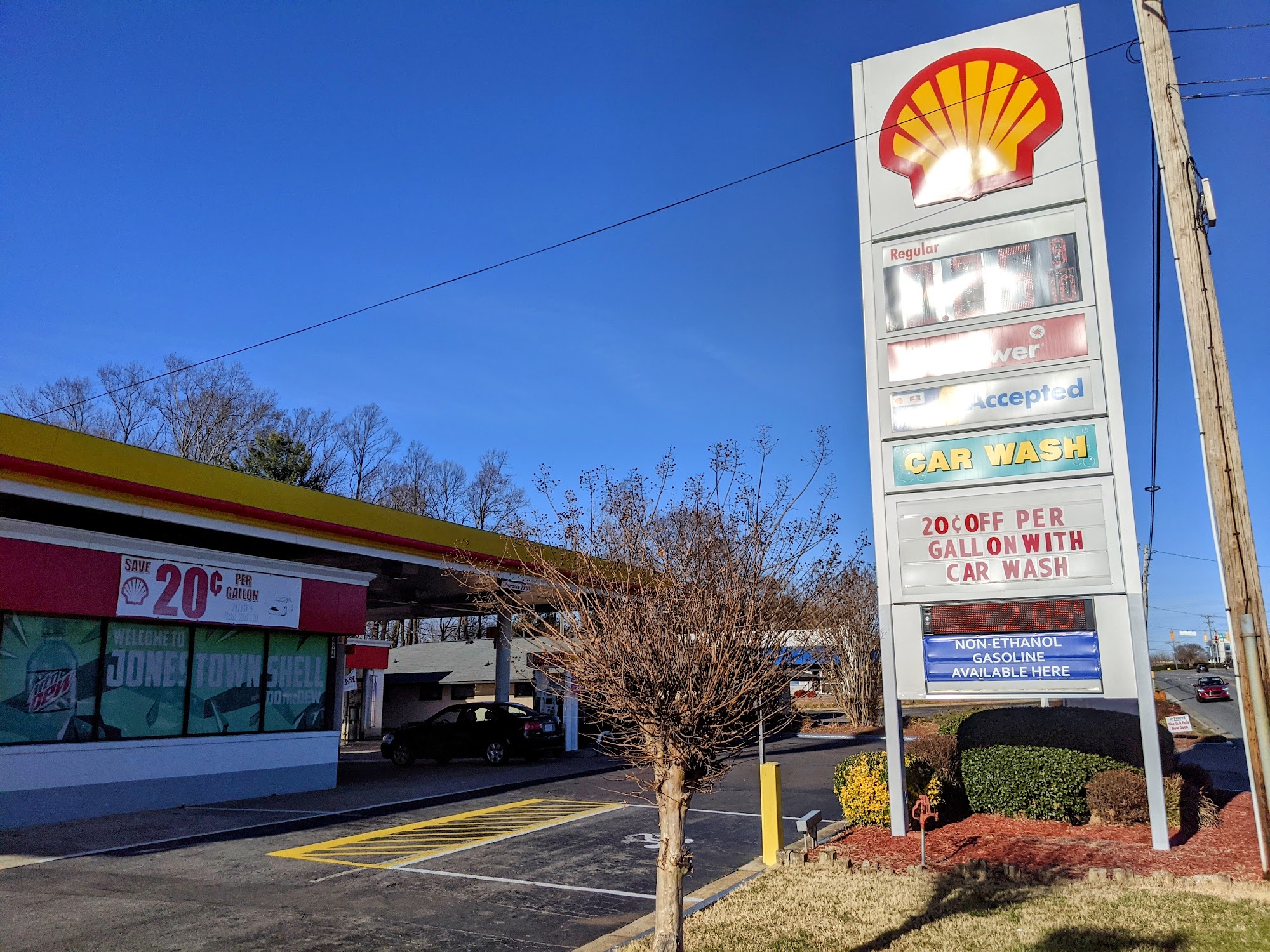 Right off the highway, good ⛽ gas prices and semi-inexpensive. Friendly cashiers but not super safe late at night. They do have both vacuums and air here as well. Easily accessible by the road and adjacent shopping center.