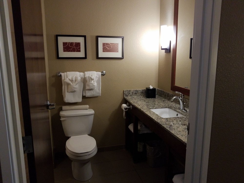 Comfort Suites offers a comfortable and convenient stay for travelers. The hotel provides a range of amenities, including a free breakfast, a small bar with video lottery and free popcorn, and a pool with a waterslide that kids particularly enjoy. The rooms are generally in good condition, though some may show signs of wear and tear, such as worn carpets or slow-draining sinks. The staff is frequently praised for their helpfulness and accommodating nature, with one guest highlighting the exceptional service provided by a front desk employee named Chino. While the hotel receives positive reviews overall, some guests have encountered issues, such as noisy and unruly children in the hallways or problems with the television. Additionally, some guests have expressed disappointment with the hotel's lack of a military discount on weekends. Despite these occasional challenges, Comfort Suites is widely regarded as a good place to stay, offering a comfortable and enjoyable experience for travelers. The hotel's convenient location, near amenities like Walmart and various dining options, further contributes to its appeal.