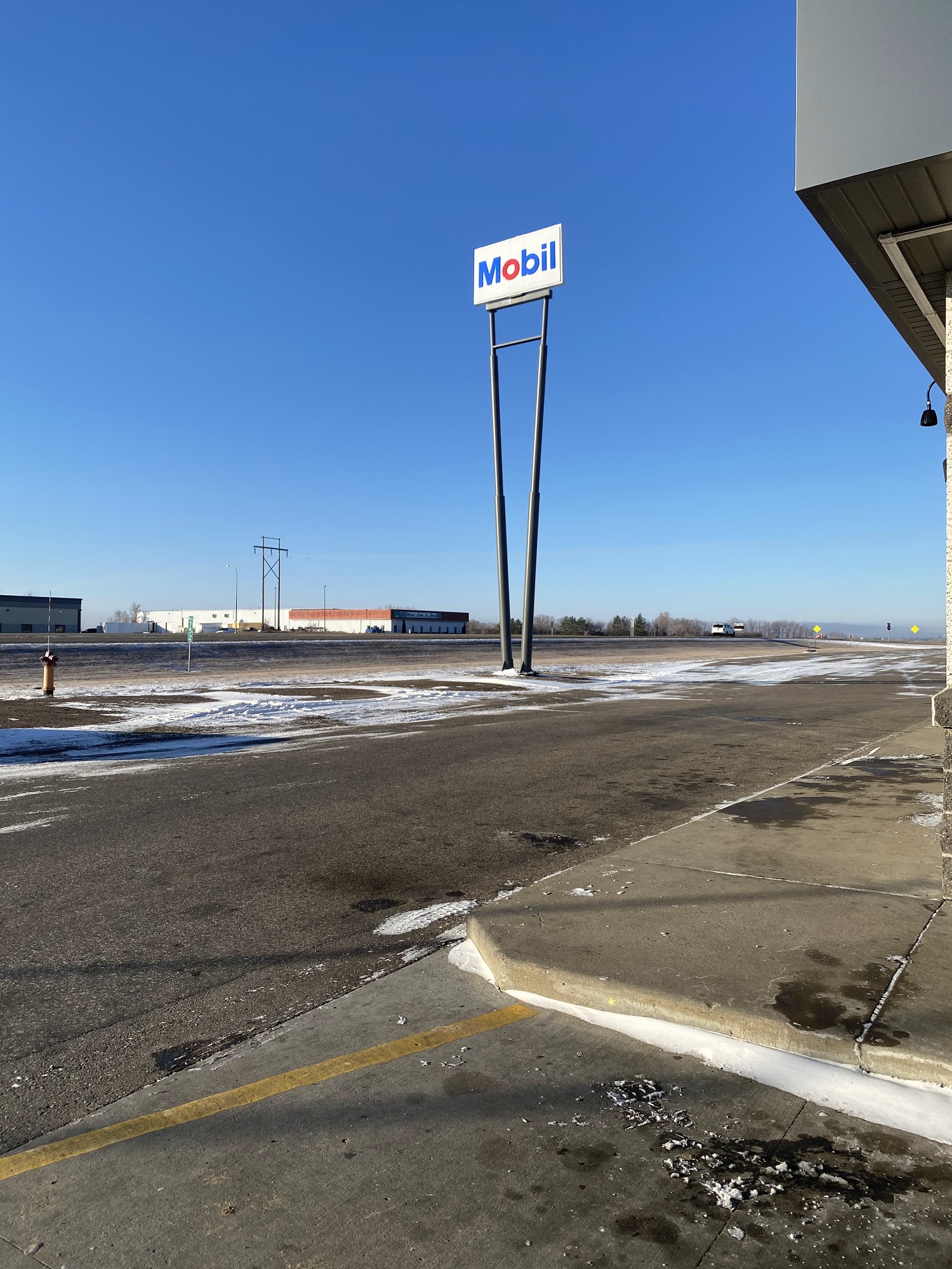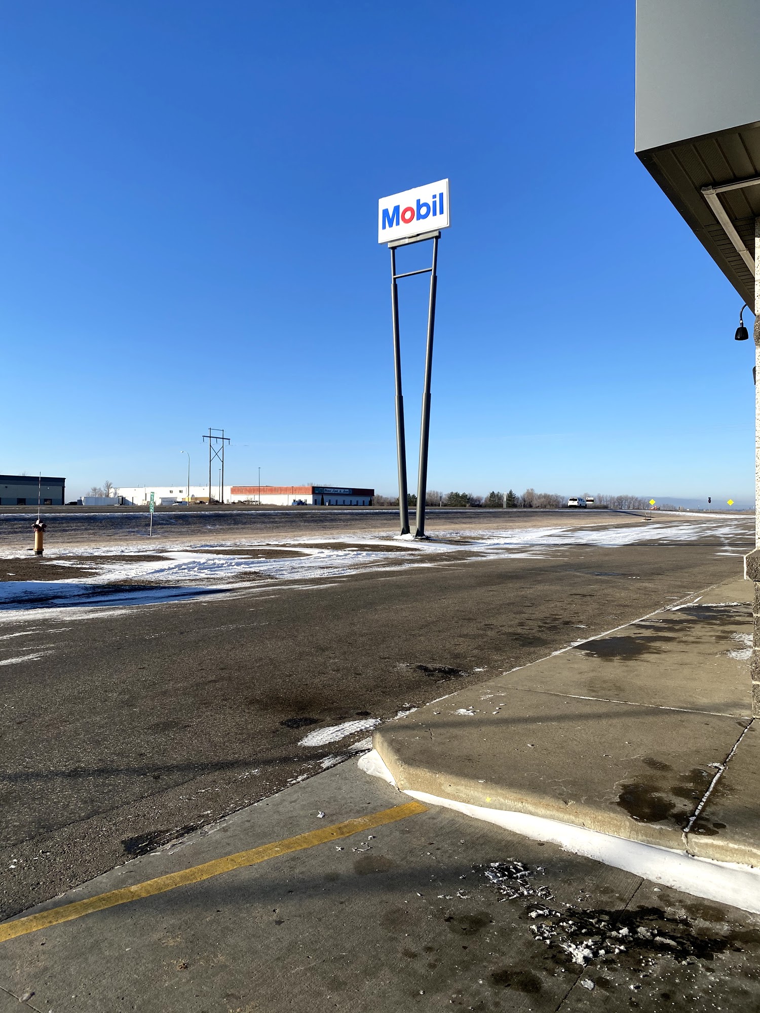 Mobil is a gas station that has undergone several name changes but remains a consistent stop for customers. Currently, there is a lot of construction, causing some pumps to be down. The store offers limited snack options, particularly for gluten-free items, and the deli, liquor, and grocery sections are quite small. Prices in the store are noted to be high. However, some customers appreciate the low fuel prices for oversized loads and the availability of hot meal options, along with helpful staff and clean washrooms.