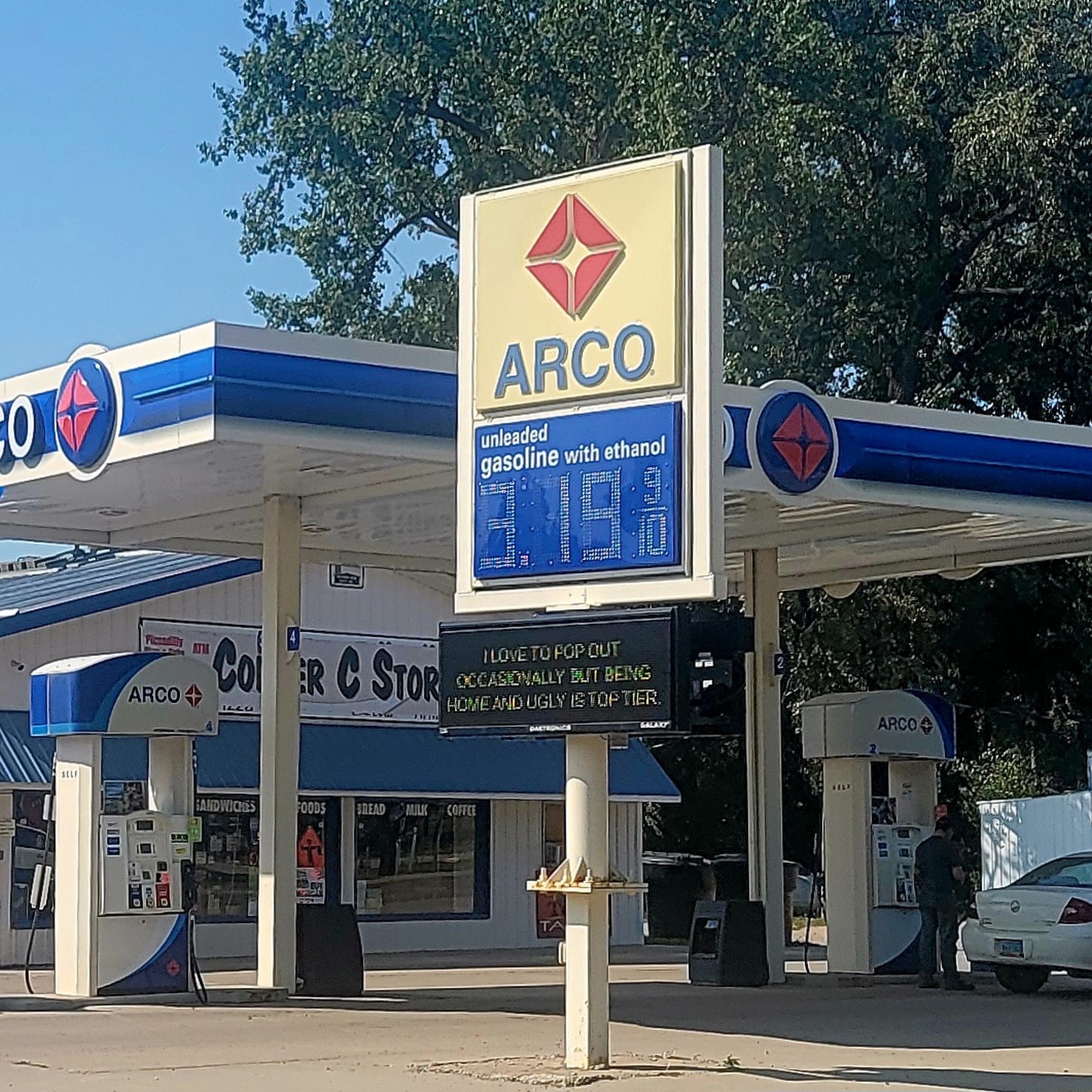 Convient gas station and we all get free pizzas after you fill up your gas stamp cards