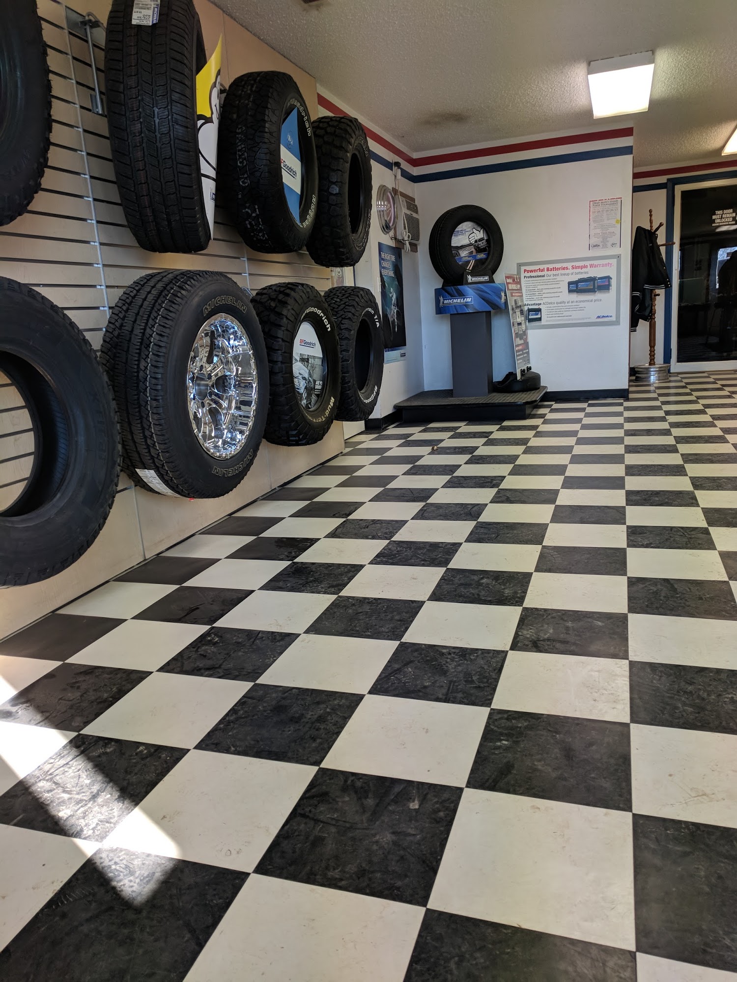 OK Tire Store is a business that provides automotive and customer service. They have a friendly group of people running the shop who are quick and make sure they do it right every time. One customer had a throwing star in their sidewall and was helped quickly, getting back on the road ASAP. This person highly recommends the place. Another customer was told at another tire shop that their tires were out of balance and needed replacing, but OK Tire Store did a fantastic job balancing them and was less expensive. While generally very nice, there was an instance where a customer was told they had a time slot available, but upon arrival, it was no longer available and they were referred to another tire shop.