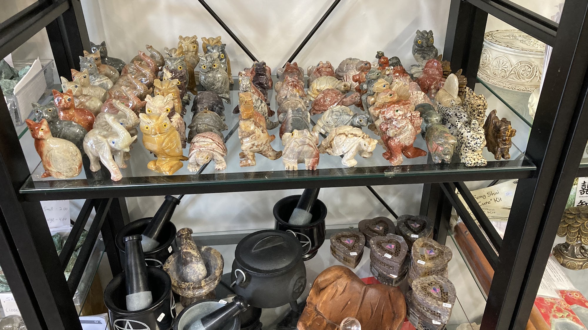 We’ve been making people feel good with positive vibrations for over 15 years now! Family owned and operated. Hundreds of crystals, sterling silver jewelry, stone carvings, oracle/tarot cards, fairies, dragons, goddesses, astrology, numerology, mountain tshirts, purses, psychic readings, aura scans and so much more