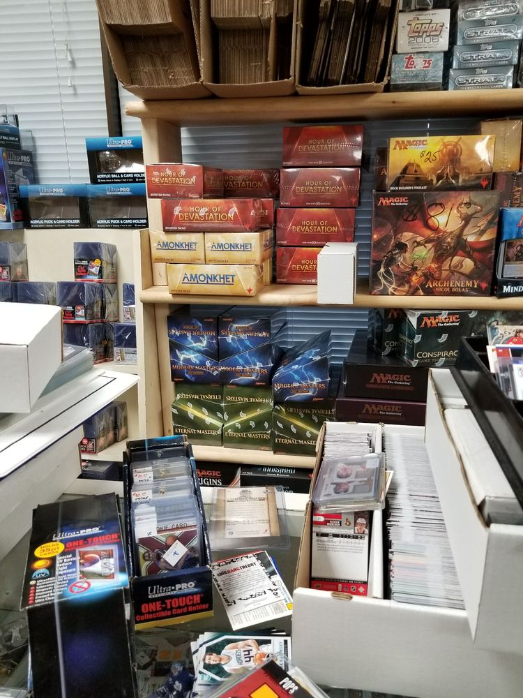 NHL, NFL, NBA, Pokemon, Magic the Gathering, Yu-Gi-Oh, you name it they've got it! Plus they have a location for hosting tournaments/events.The entrance looks like a prison on an industrial slave planet, but don't let that scare you away, the inside is nice and friendly and the owner is super nice and helpful