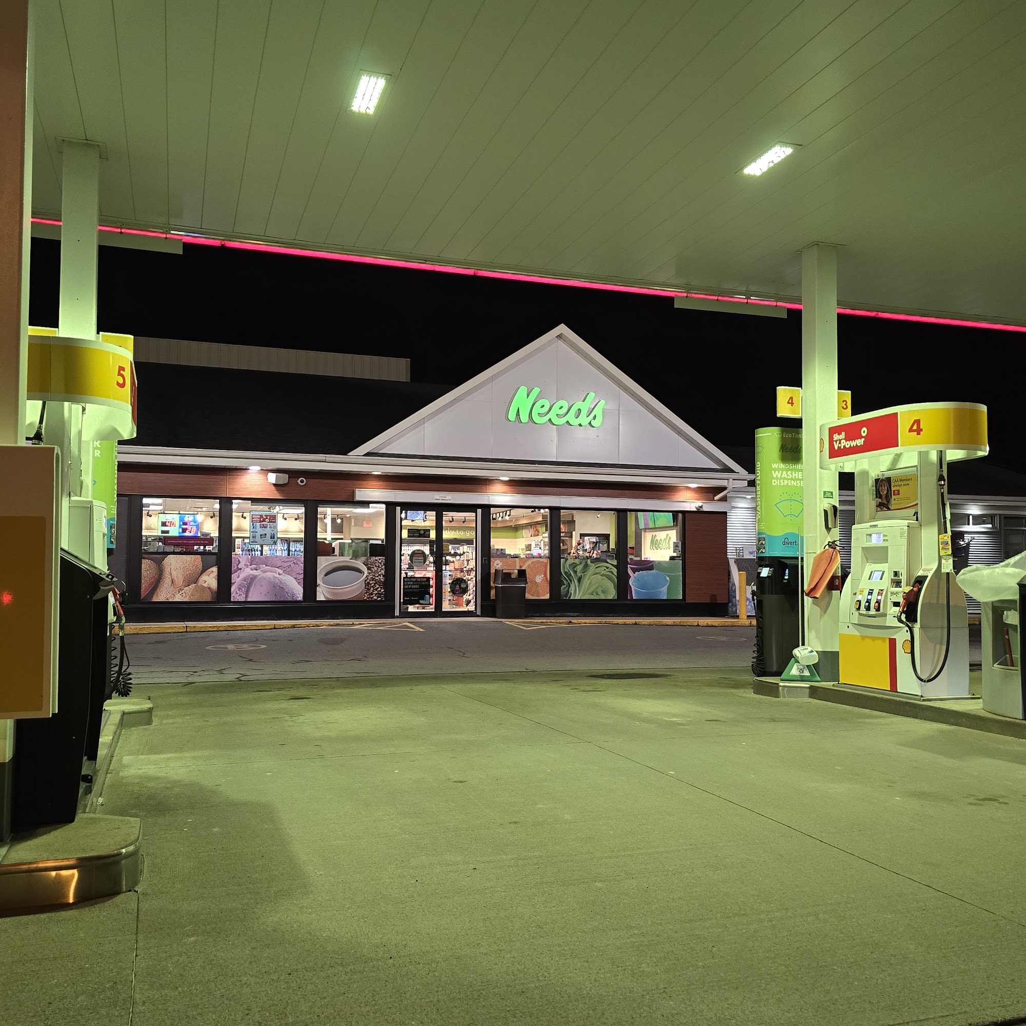 Great selection of snacks and drinks with a clean bathroom.