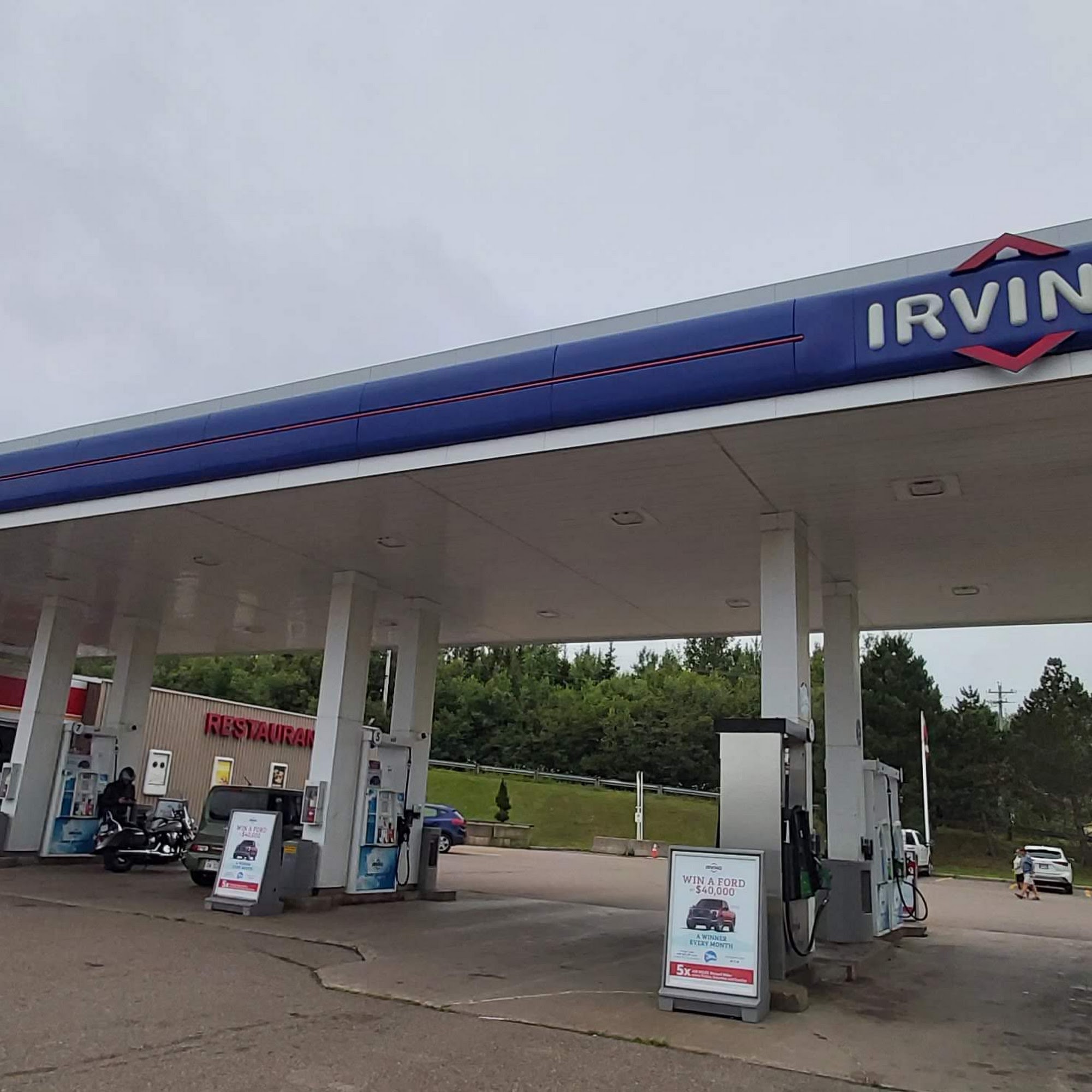 Irving Oil offers a great restaurant with nice home cooked meals, including a turkey dinner and fabulous squares for dessert. The seniors breakfast is a great size. Staff are wonderful, friendly, and provide quick service, with lines that move pretty quick. There is lots of parking. The only noted criticisms are a charge for wheel air and a single past difficulty ringing in an unpriced item. Overall, it is a great place to eat with lots to choose from and is definitely worth stopping in for.